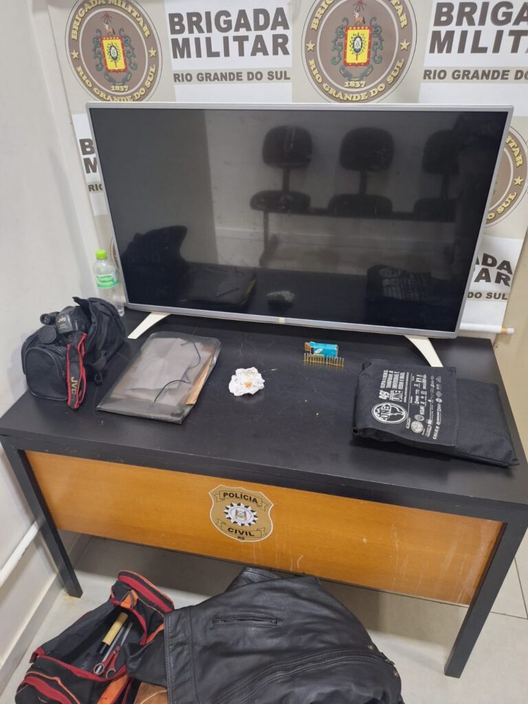 Com o acusado foi localizado uma quantidade de crack, 15 munições de calibre 22, além de vários objetos pertencentes a vítima, que haviam sido furtados por ele dois meses atrás.