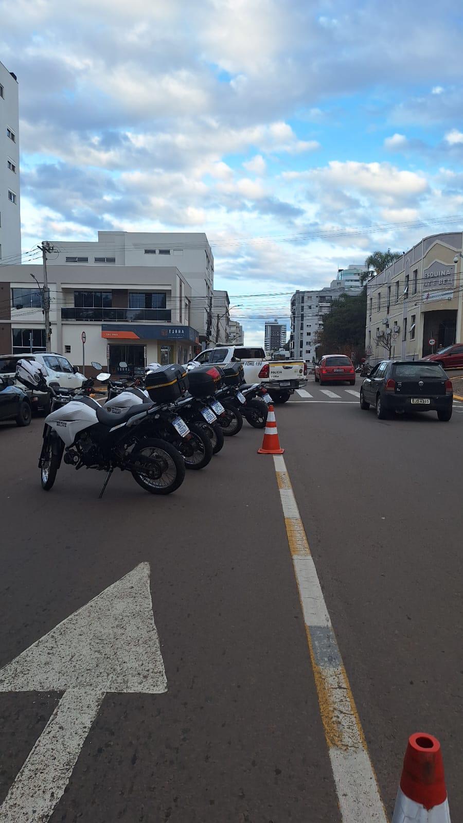 A equipe recolheu quatro veículos ao depósito do guincho: um carro por estacionar sobre a faixa de pedestres na Avenida Barão do Rio Branco, em frente à praça central, e três motos por irregularidades como pneus desgastados, lacre da placa rompido e condução por motorista sem habilitação.