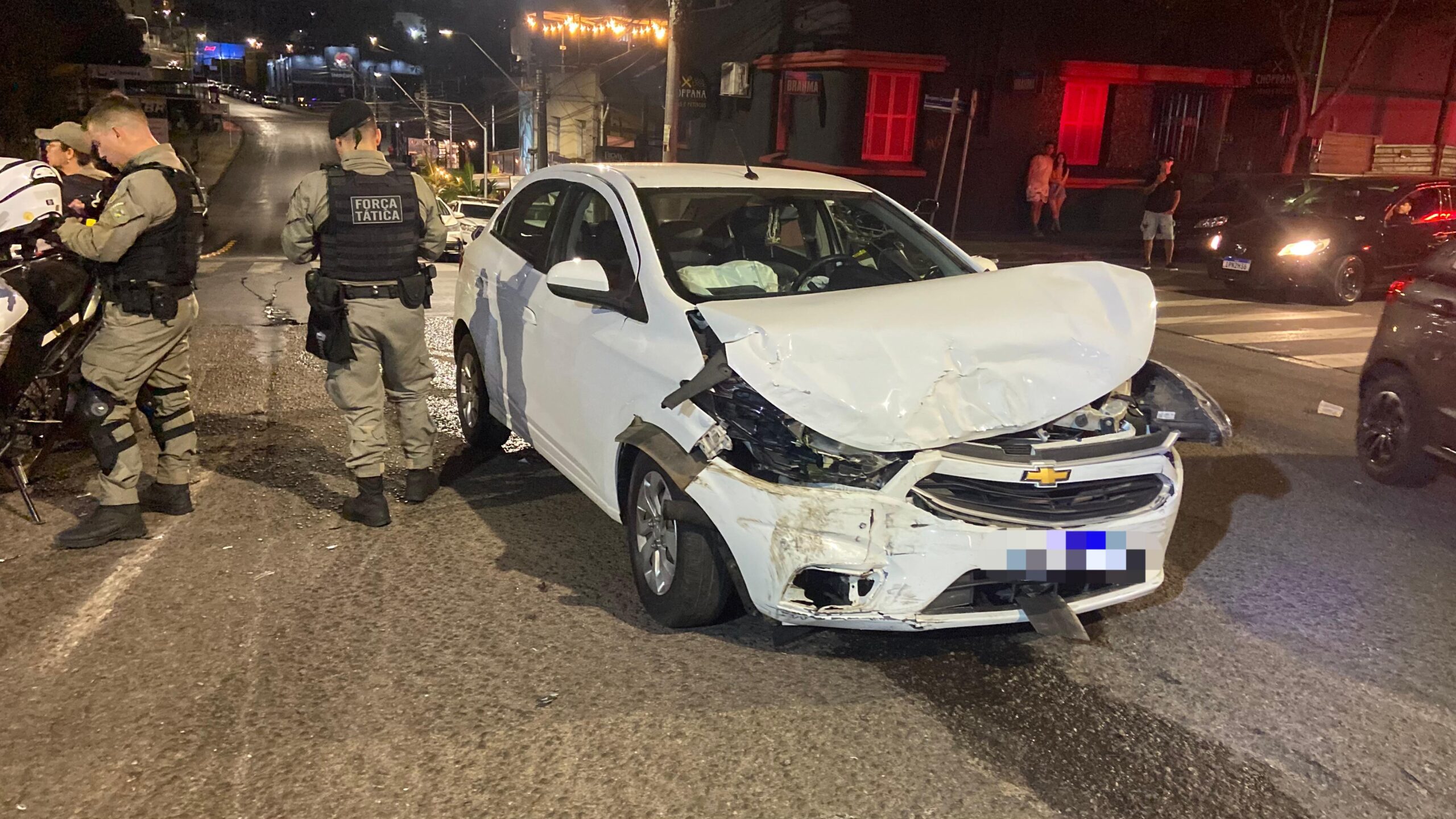 A Ford Ecosport preta subia pela Benjamin Constant, em direção à avenida Brasil, quando foi atingida por um Chevrolet Onix branco que seguia pela Independência.