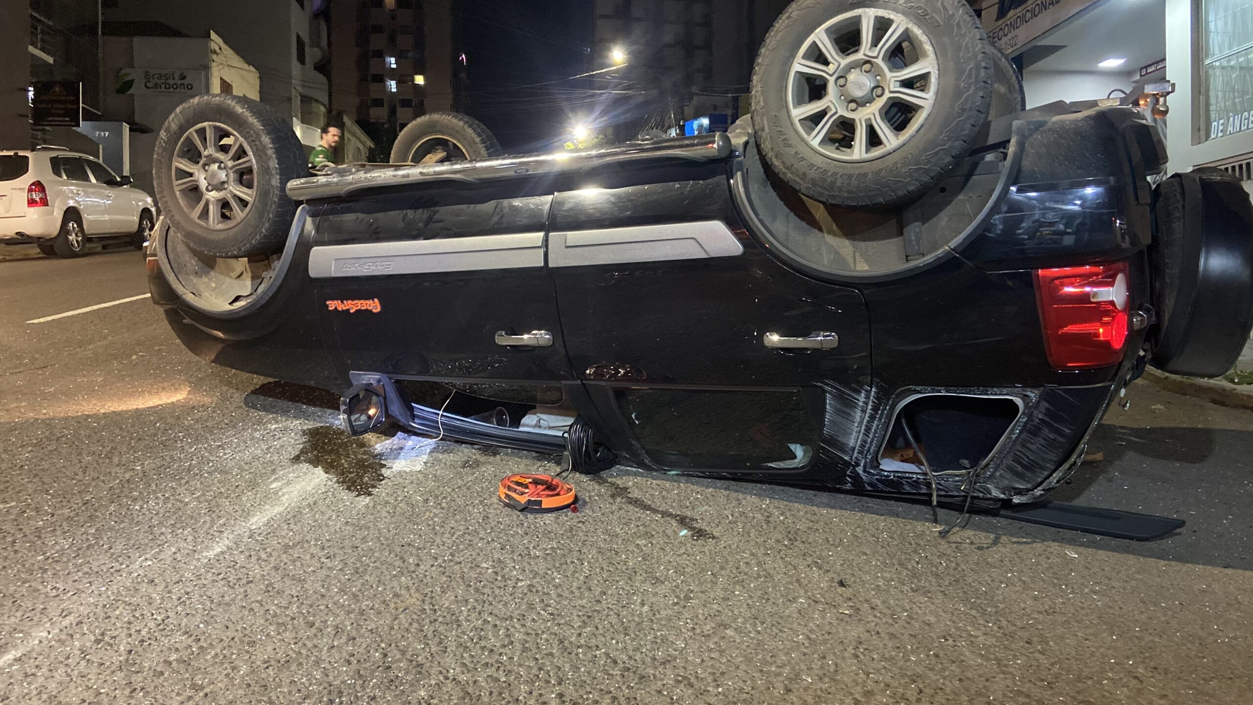 Acidente com capotamento é registrado no centro de Passo Fundo