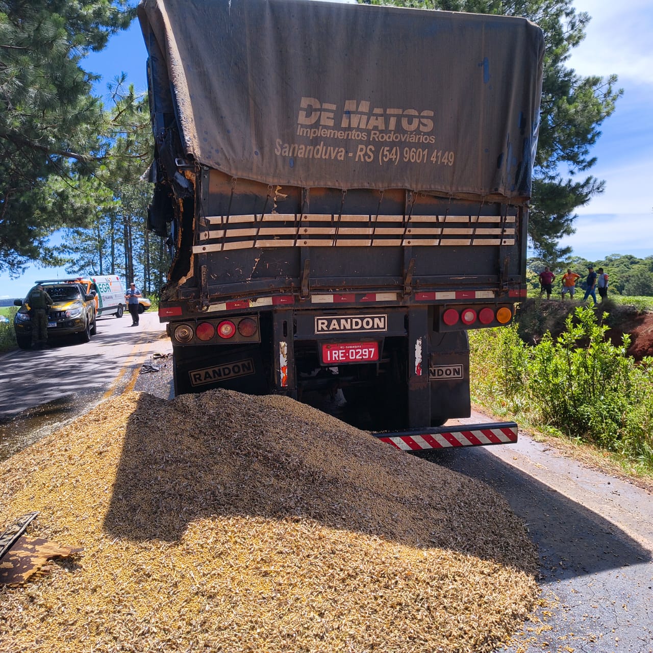 De acordo com a Polícia Rodoviária Estadual, um bitrem carregado com óleo vegetal trafegava em direção a Tapejara quando, ao contornar uma curva, invadiu a pista contrária.