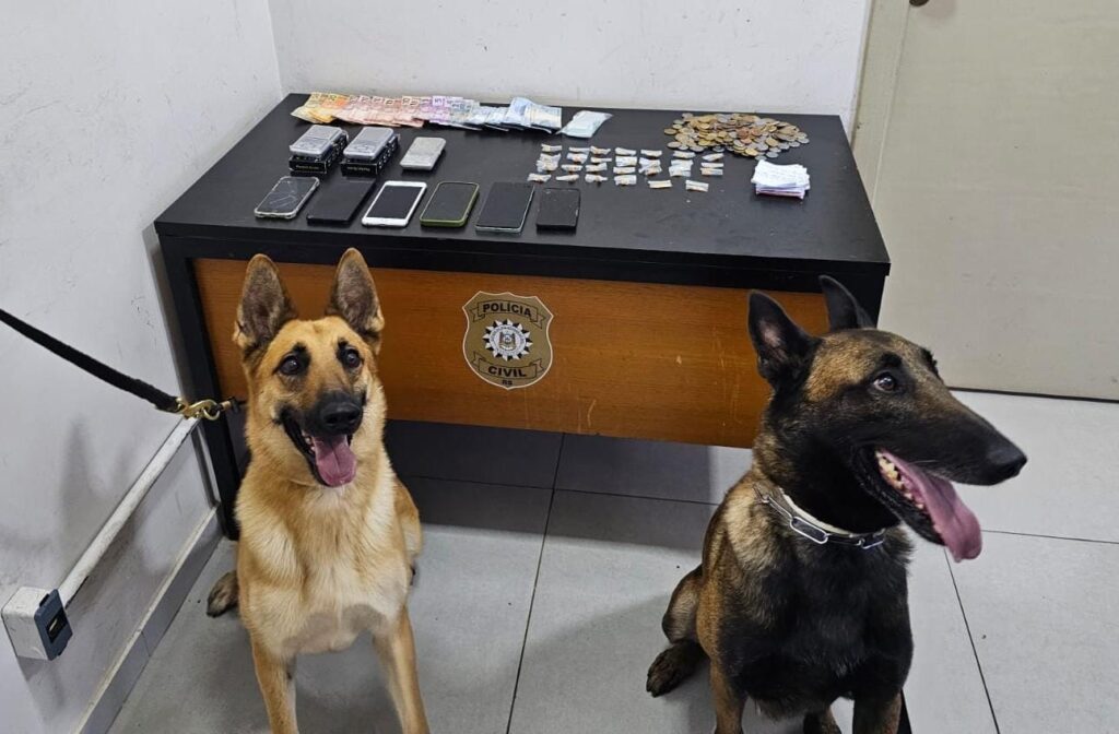 Com o adolescente, foram apreendidas 27 porções de crack, seis celulares, três balanças de precisão, R$ 295,10 em dinheiro e envelopes usados para embalar drogas.