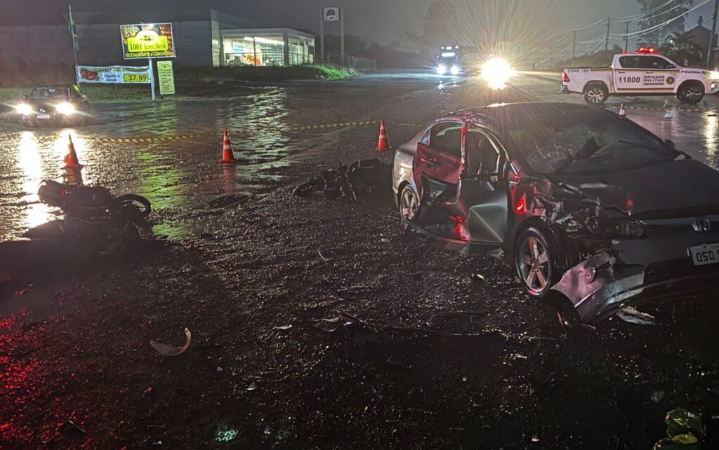 A ocorrência envolveu um automóvel Honda Civic, com placas de Marau, e duas motocicletas, uma Yamaha Fazer e uma Honda CG, ambas com placas de Passo Fundo.