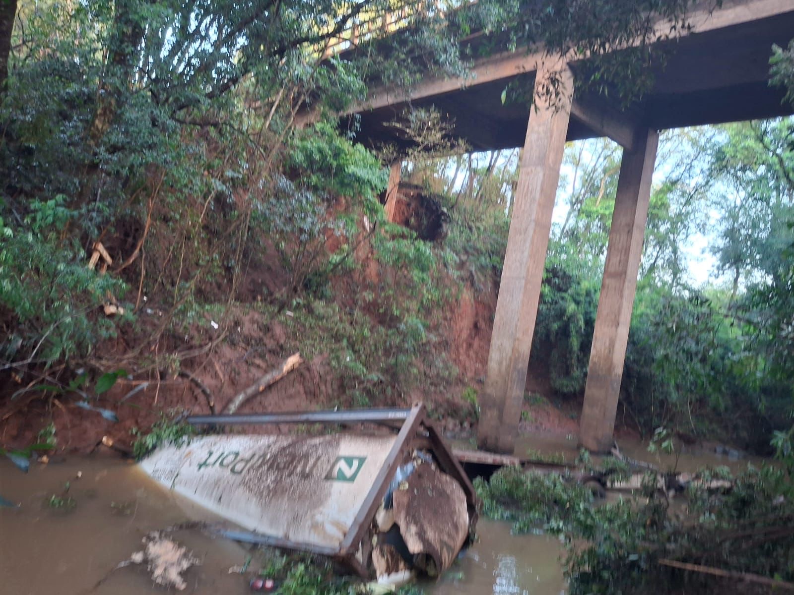 Um caminhão-tanque que transportava, aproximadamente, 26 mil litros de glicerina bruta atravessou a pista e caiu no leito do rio Pinheiro Torto, que cruza a rodovia no quilômetro 135.