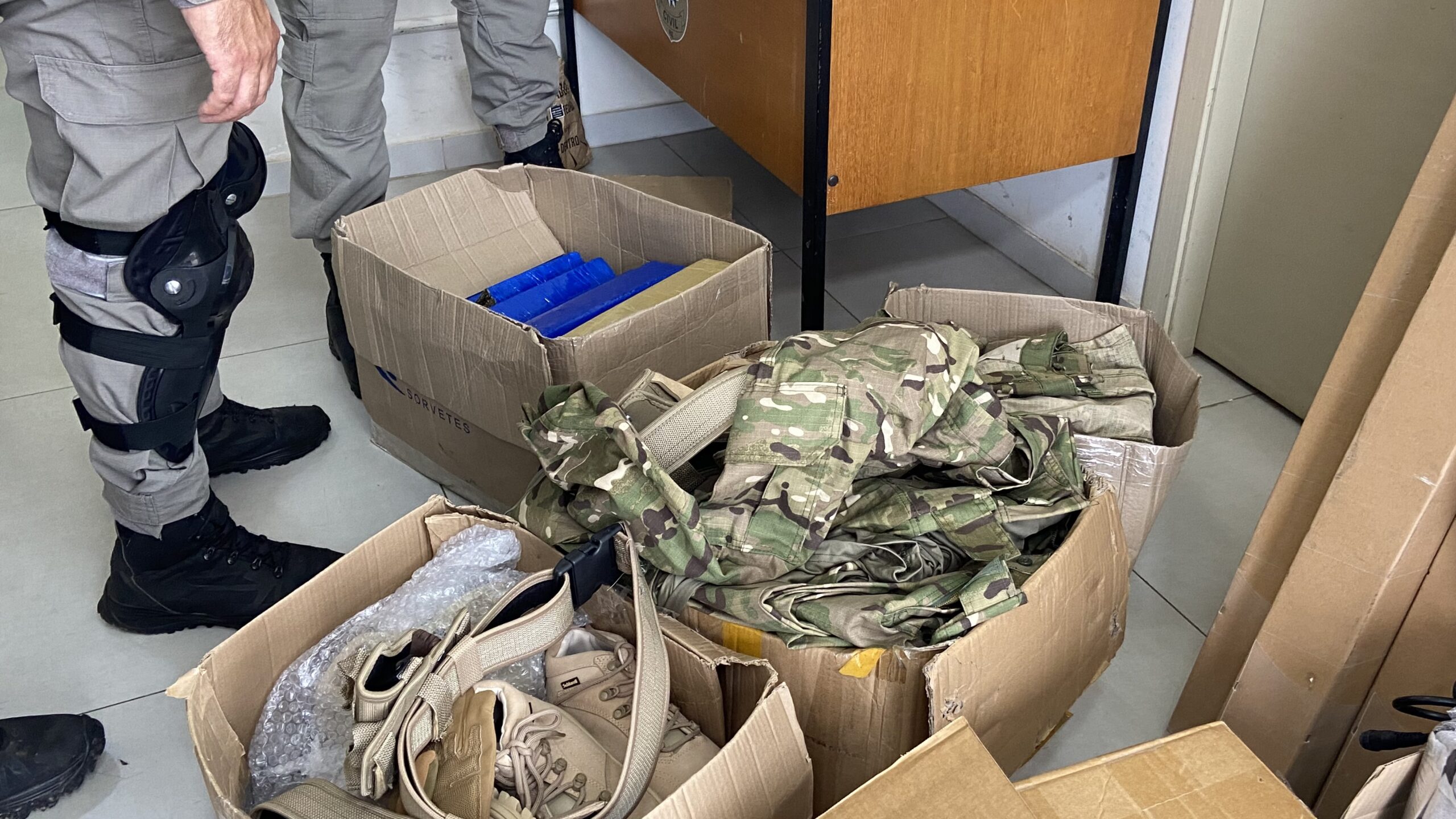 • Coletes, capacetes, fardamentos táticos, coturnos