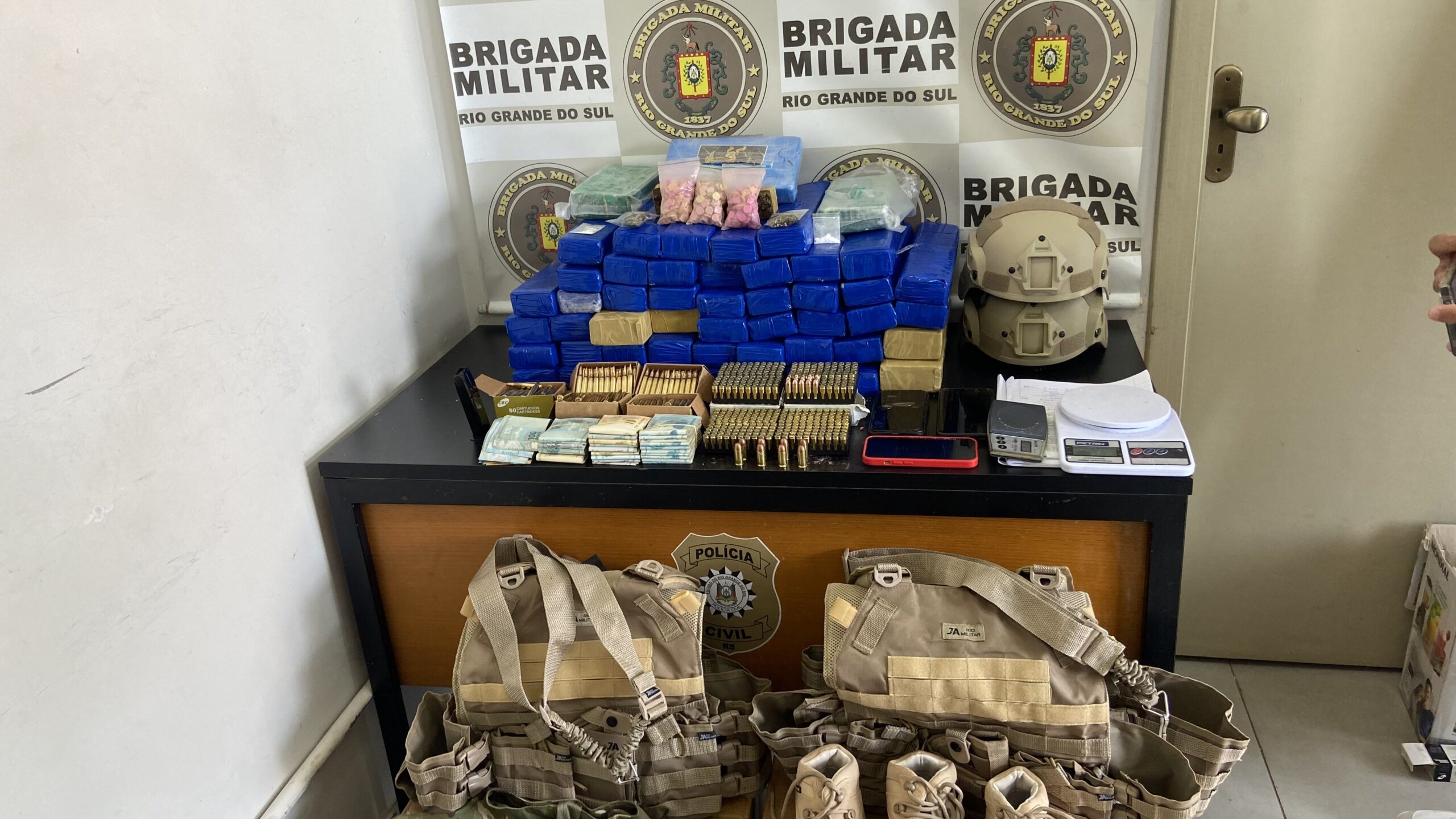 Após o acompanhamento da ação, as equipes localizaram uma residência nas proximidades, onde estavam drogas, munições, materiais táticos e veículos furtados, alguns com indícios de clonagem.
