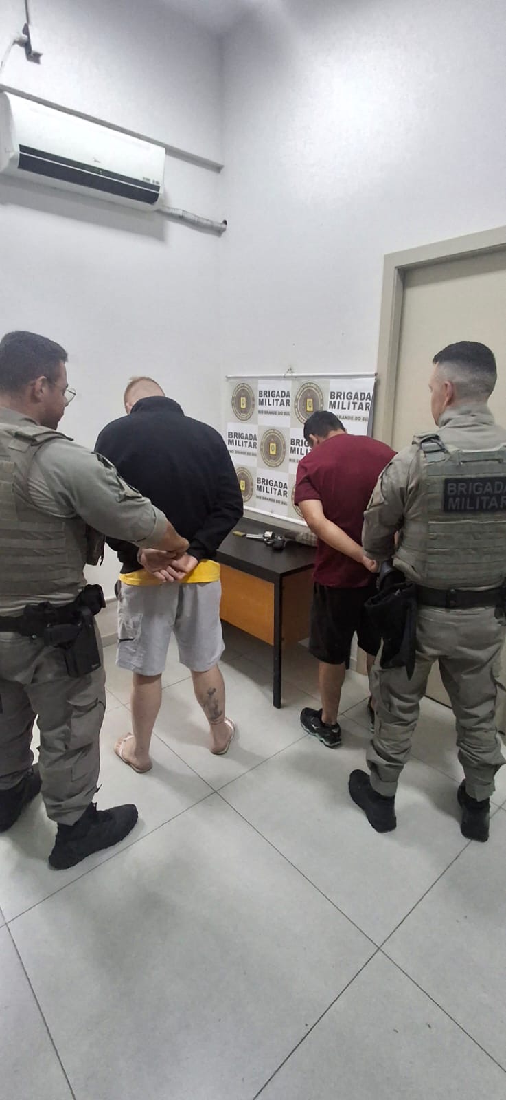 Durante a madrugada de terça-feira (17), a Brigada Militar prendeu dois homens por porte ilegal de arma de fogo de calibre restrito, no centro de Passo Fundo.