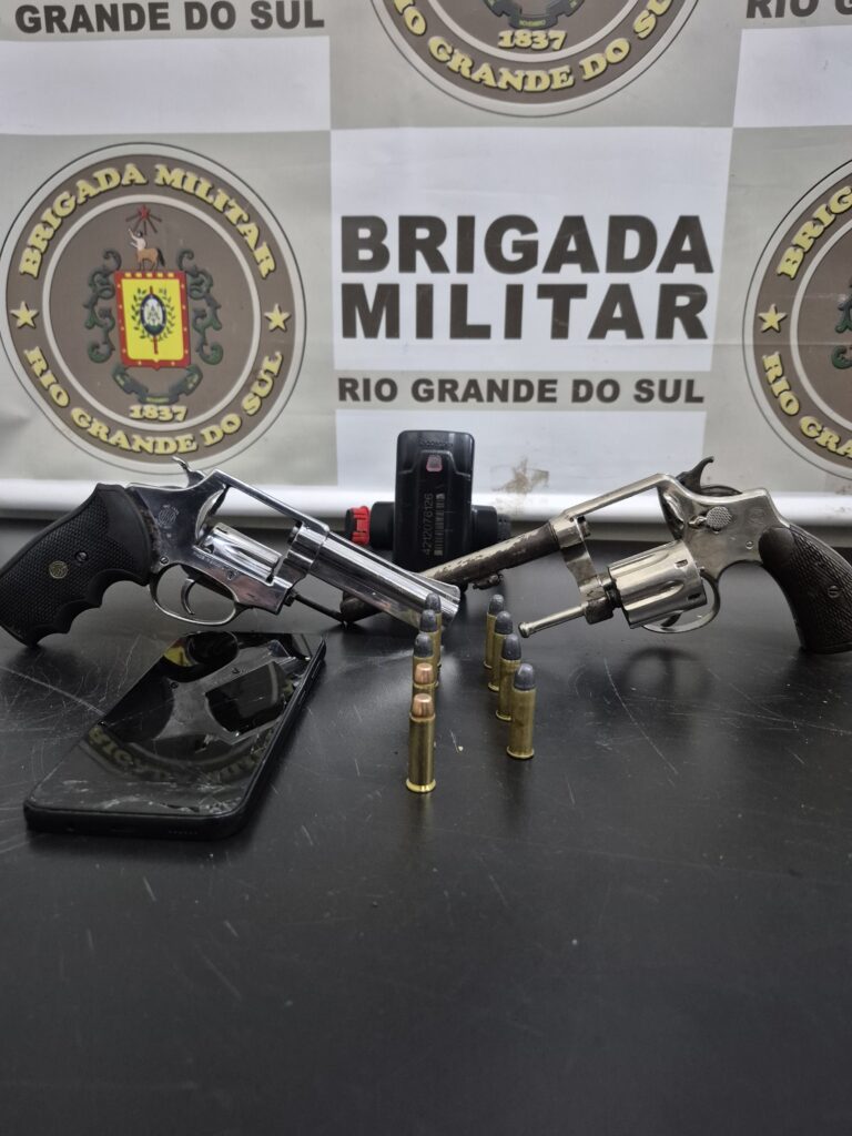 No local indicado, foram encontrados dois revólveres calibre .38 municiados.