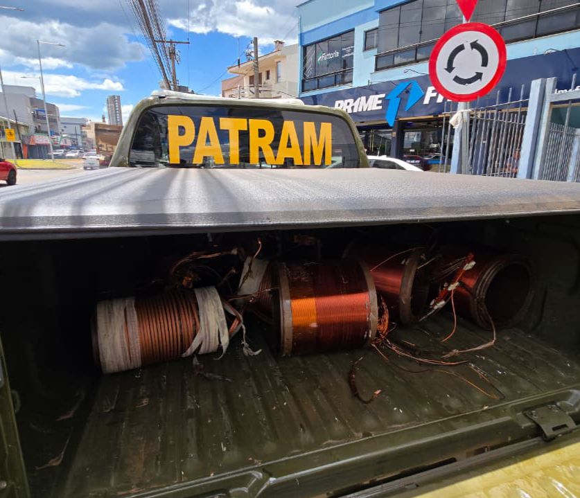 Durante a ocorrência, foram apreendidos cerca de 100 quilos de fios de cobre e diversas ferramentas usadas para retirar o material.