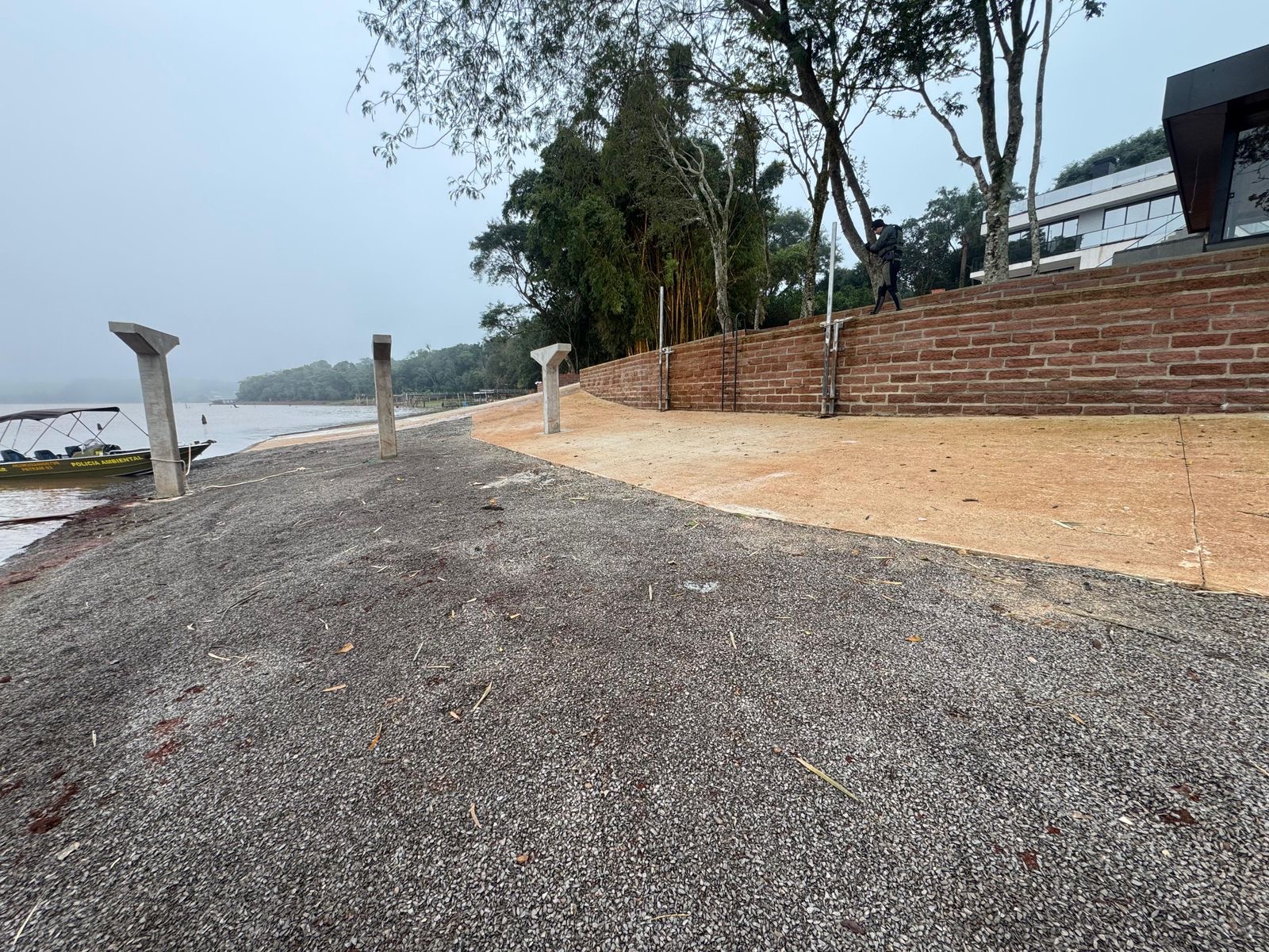 A equipe do 3º BABM identificou a construção de uma rampa com aproximadamente 100 metros quadrados que invadia uma Área de Preservação Permanente (APP). Além de invadir a APP, essa intervenção provocava a contenção de água.