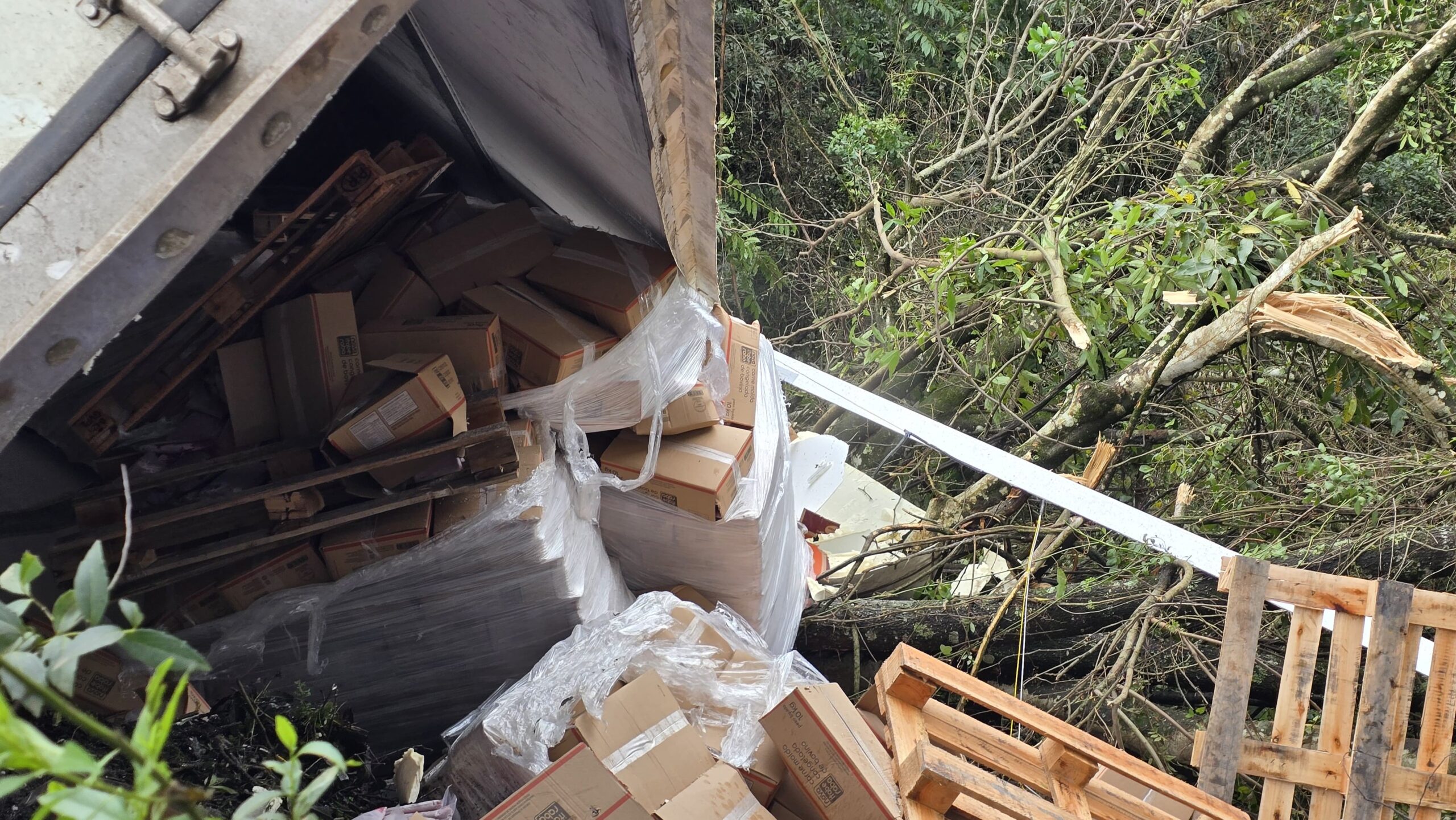 Caminhão carregado com carne capota na ERS-135 entre Coxilha e Passo Fundo