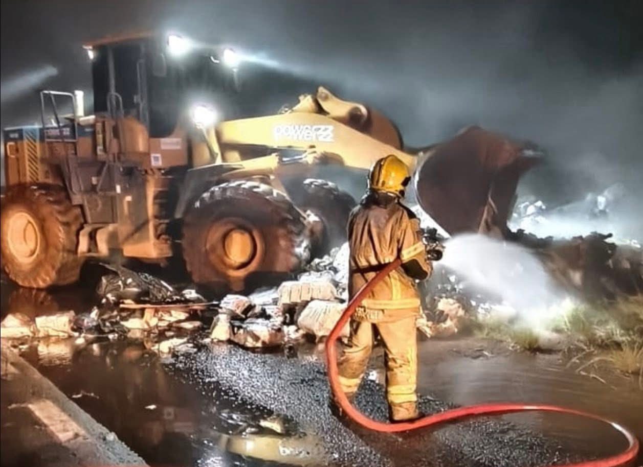 O veículo estava carregado com papéis, o que contribuiu para que as chamas se espalhassem rapidamente.