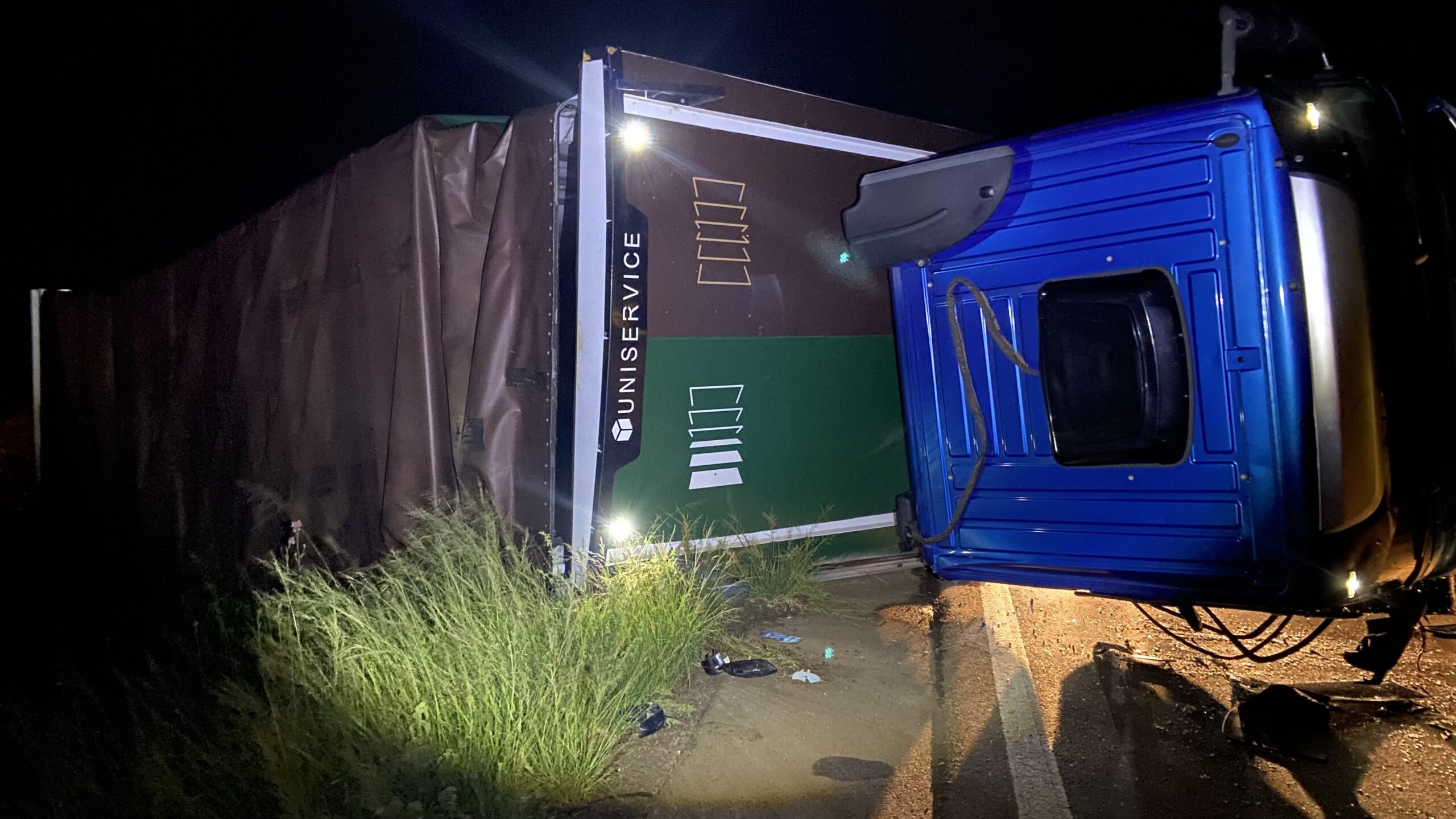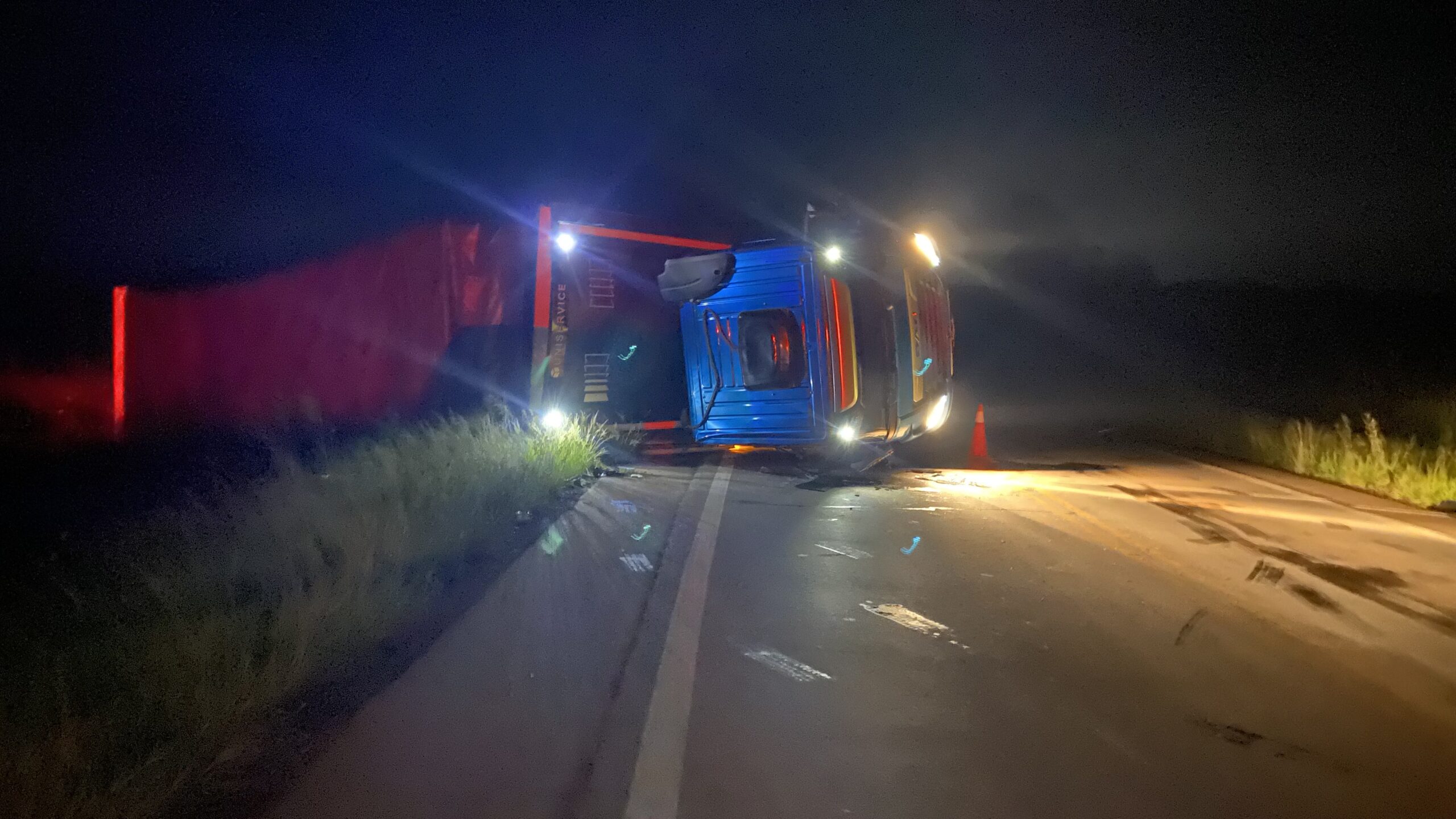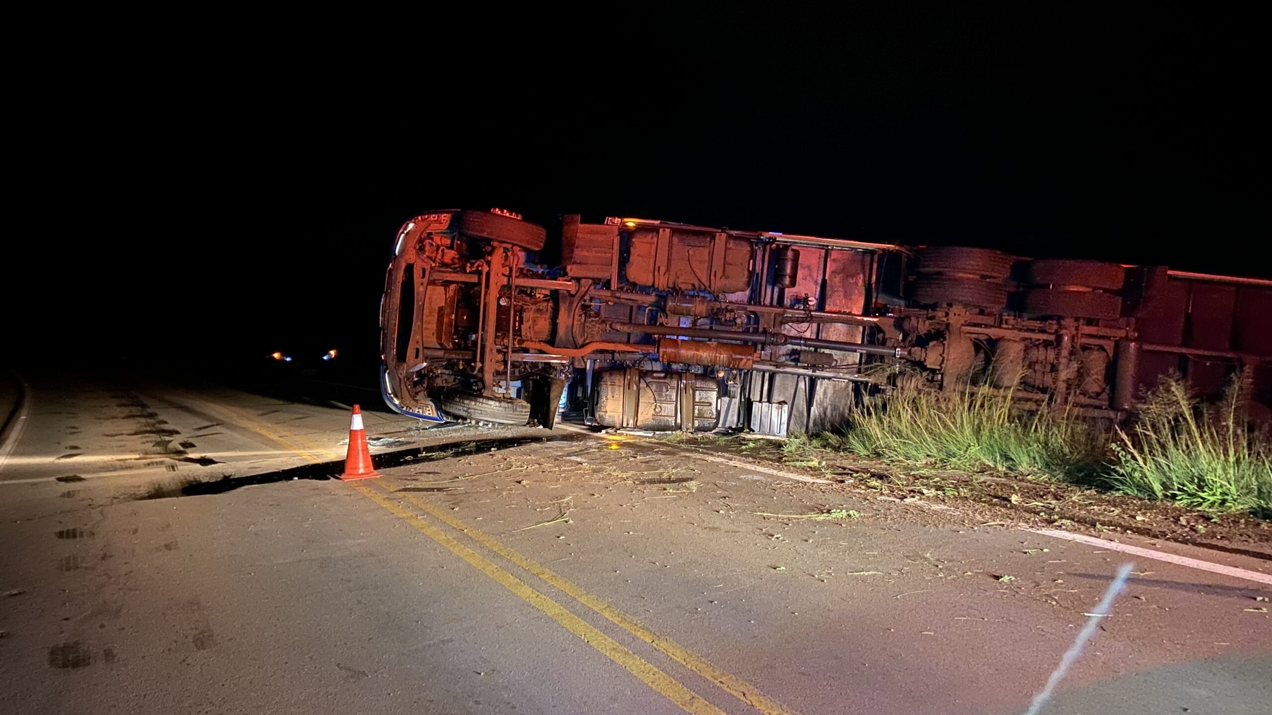 Na madrugada de terça-feira (17), um caminhão tombou na ERS-324, no trecho entre Passo Fundo e Pontão.