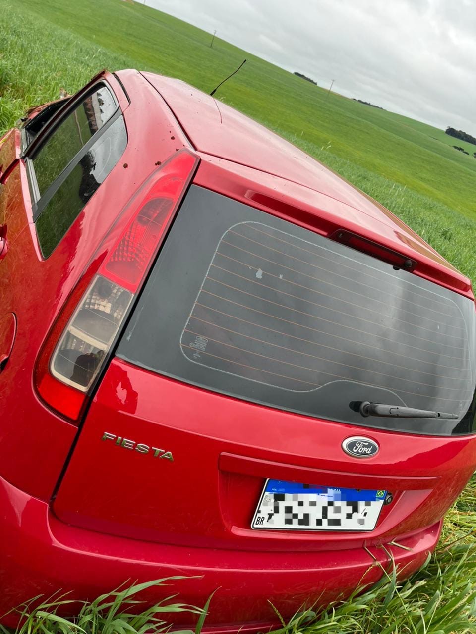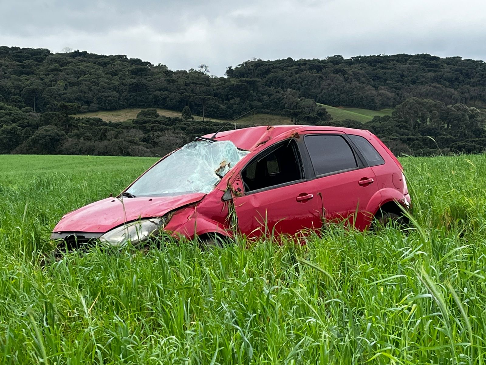 Segundo relatos, o motorista de um Ford Fiesta, com placas de Passo Fundo, se assustou com um caminhão que vinha em sentido contrário em uma curva, perdeu o controle da direção e capotou o veículo três vezes, parando dentro de uma lavoura às margens da rodovia.