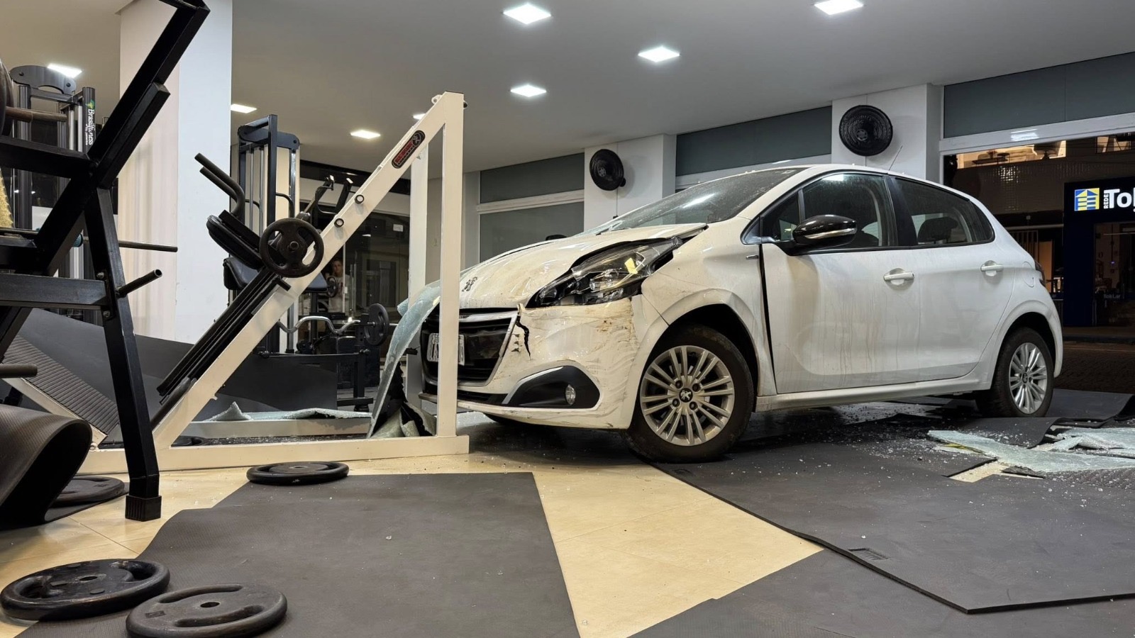 O veículo, com câmbio automático, atingiu ao menos três aparelhos de ginástica antes de parar no interior do prédio.