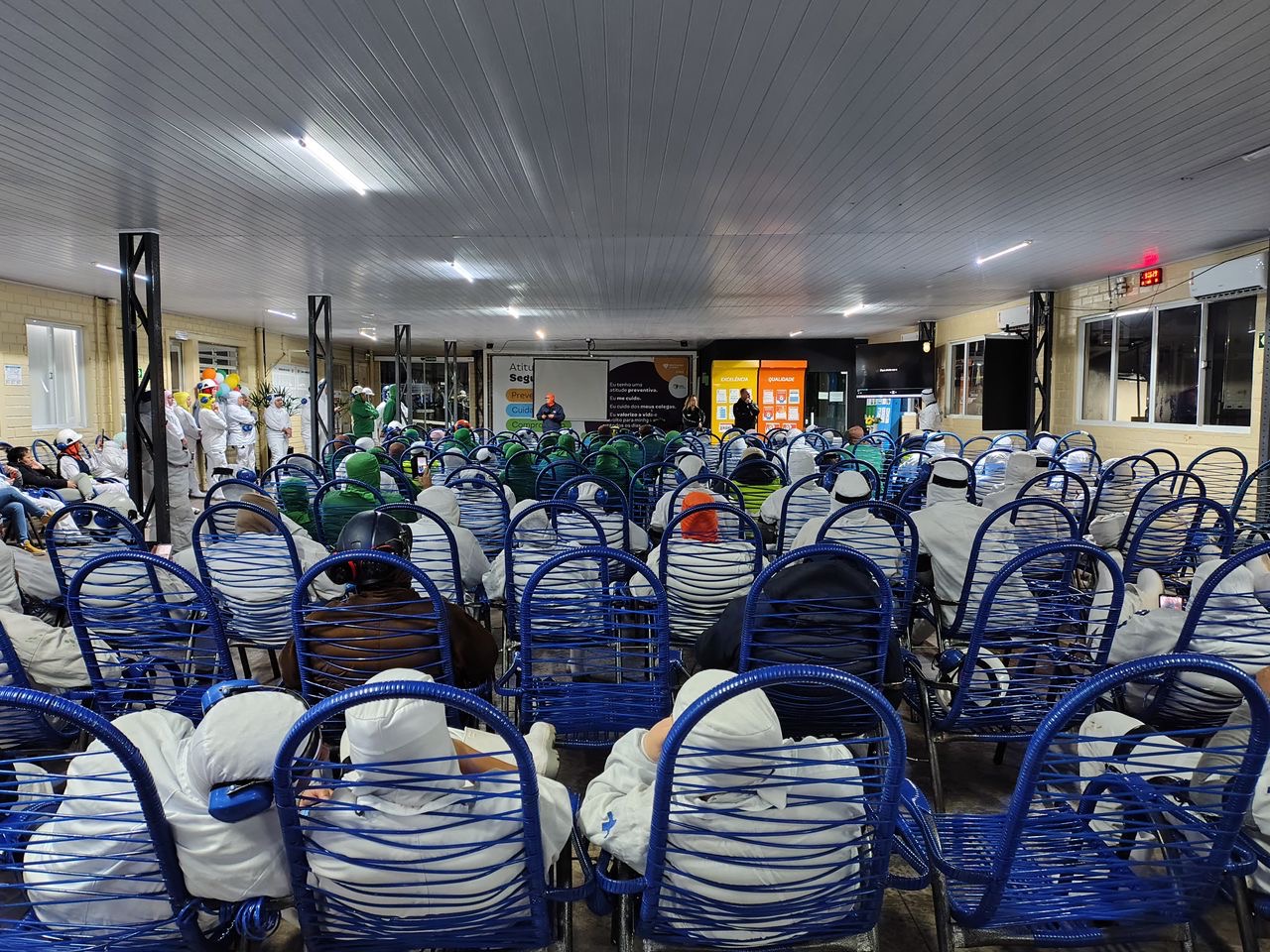 À noite, a equipe retornou à empresa, onde, a partir das 21h, uma nova palestra foi realizada, encerrando por volta das 22h40.