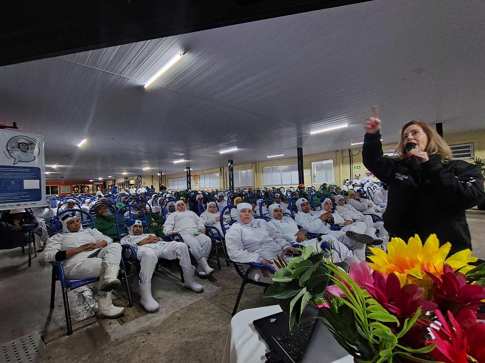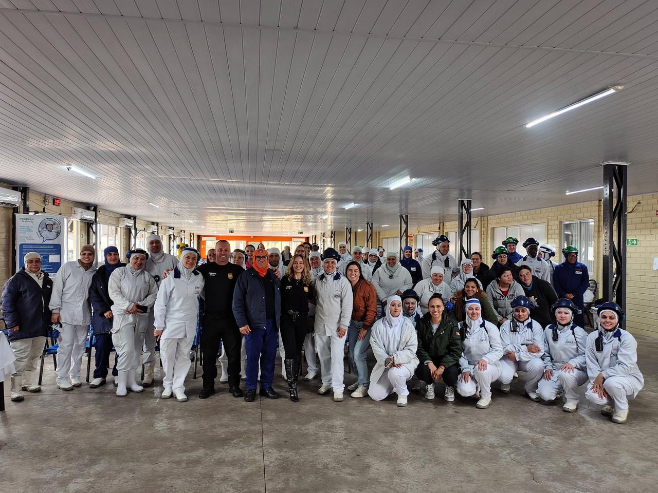 A Delegacia Especializada no Atendimento à Mulher (DEAM) de Passo Fundo, sob coordenação da delegada Rafaela Weiler Bier, realizou nesta quarta-feira (23) uma importante ação preventiva nas dependências da empresa JBS Seara.