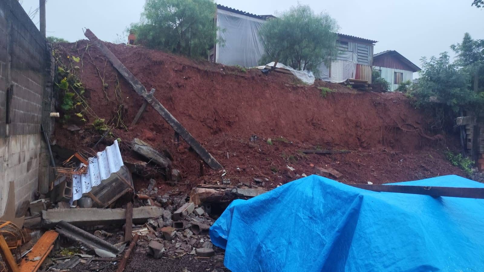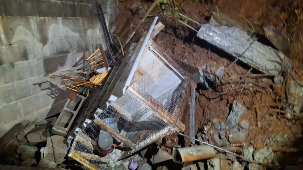 O muro de uma residência veio abaixo, mas novamente, ninguém ficou ferido.