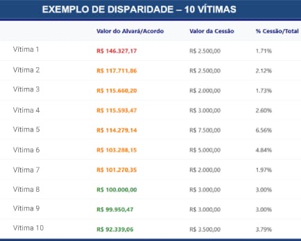 Em muitos casos, as vítimas recebiam menos de 2% do valor a que tinham direito. Um dos exemplos mais graves aponta uma vítima com crédito de R$ 146 mil que recebeu apenas R$ 2.500.