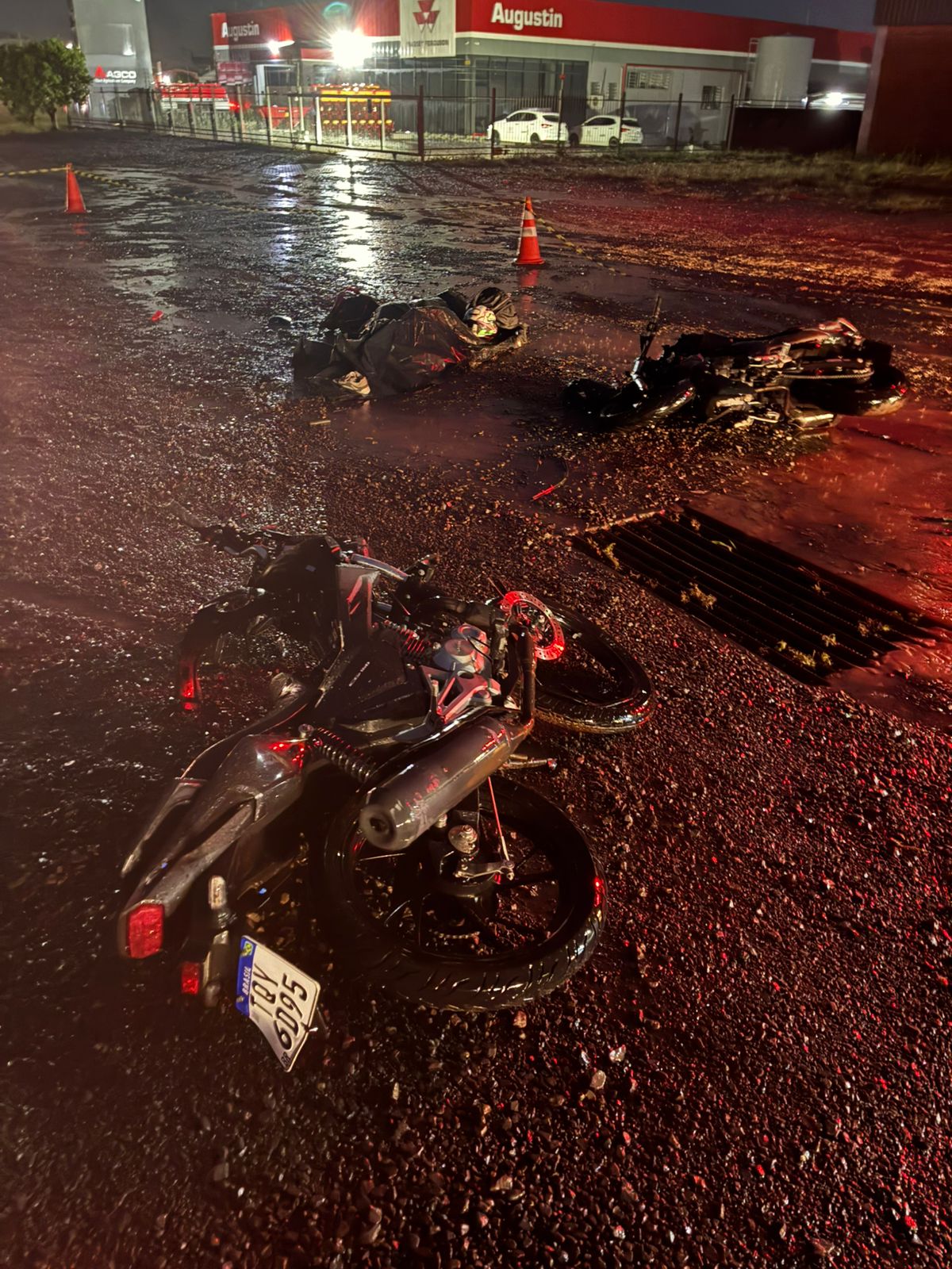Conforme informações, o automóvel teria aquaplanado e atingido as motocicletas.