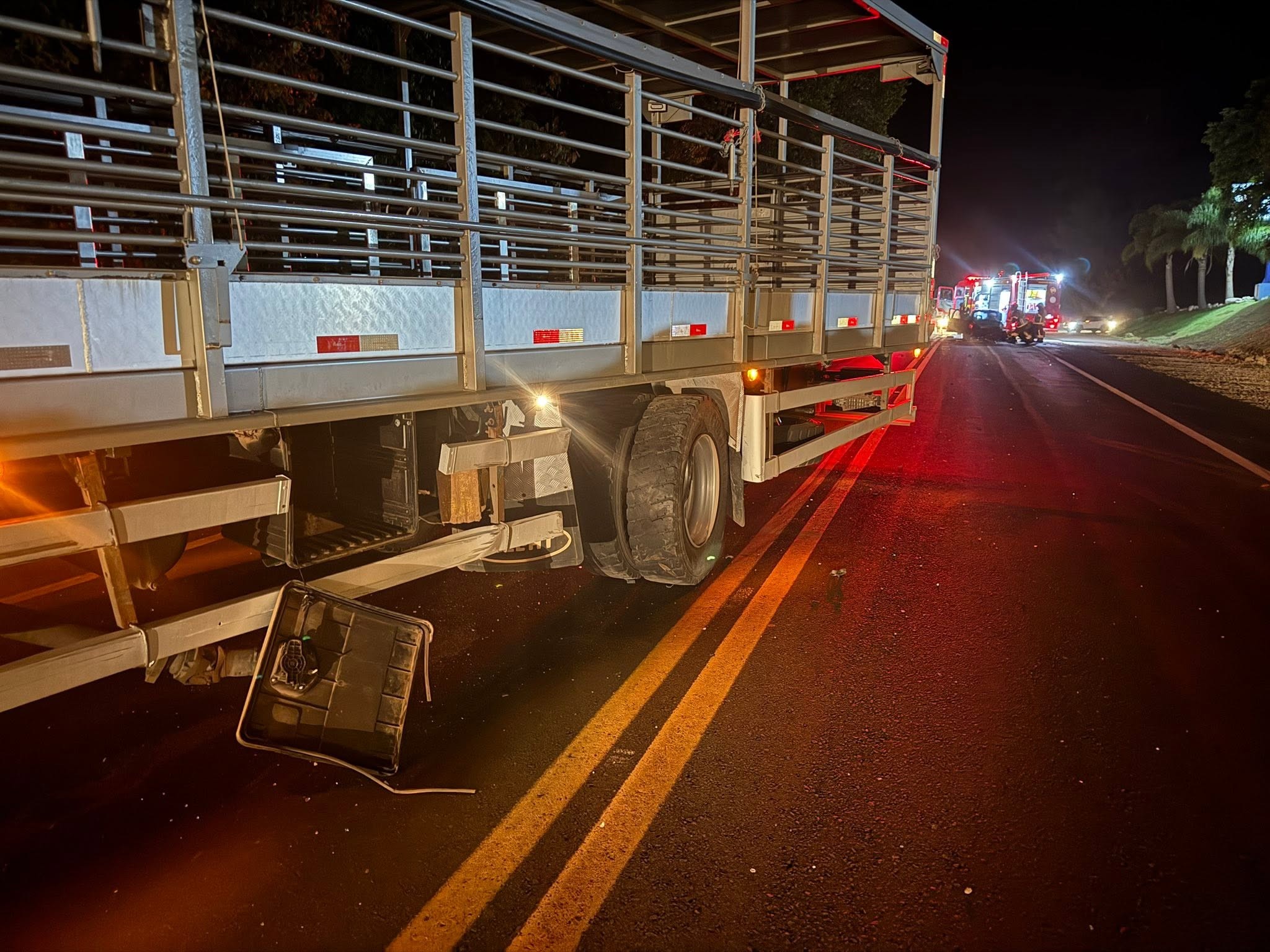 O caminhoneiro não se feriu. A pista permanece totalmente bloqueada no momento para atendimento da ocorrência.