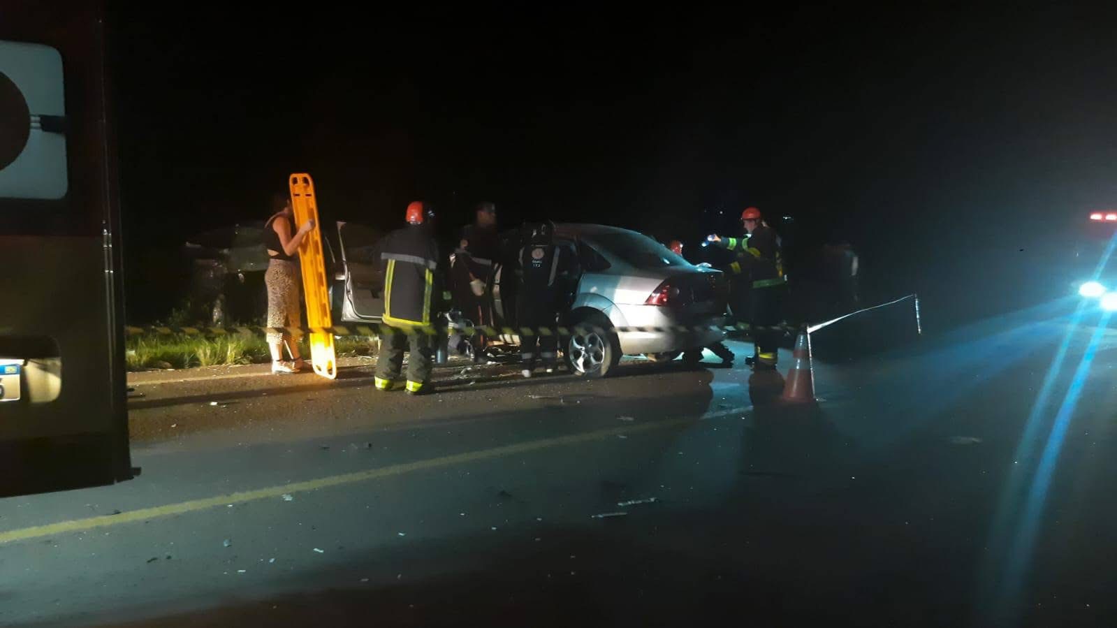 A colisão envolveu dois veículos, um Volkswagen Fox e um Ford Focus.