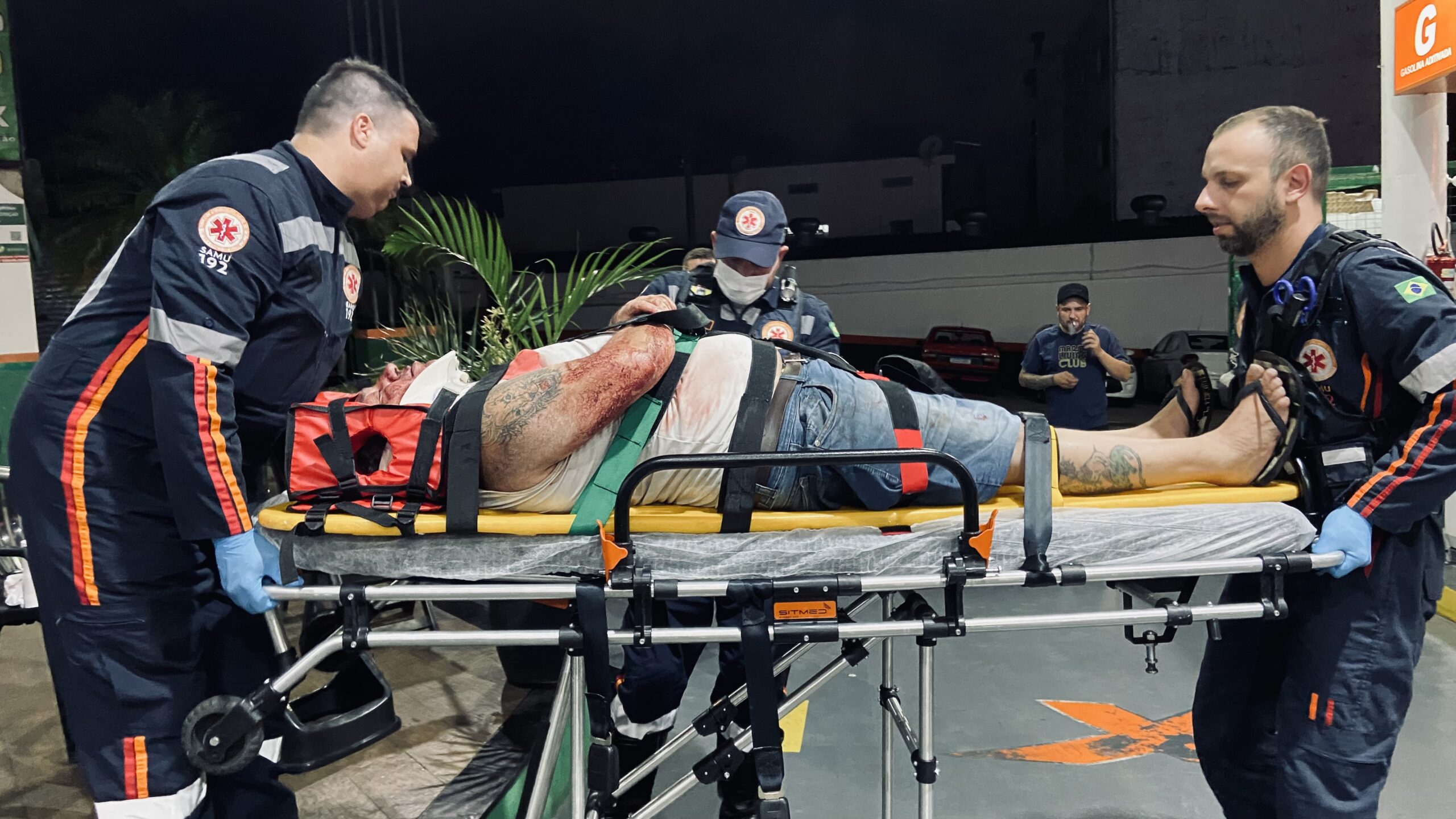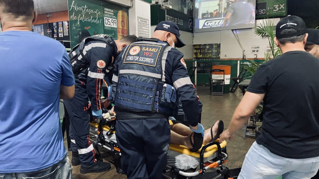Durante a confusão, o homem que já estava no posto, acabou ferido e precisou de atendimento médico no local.