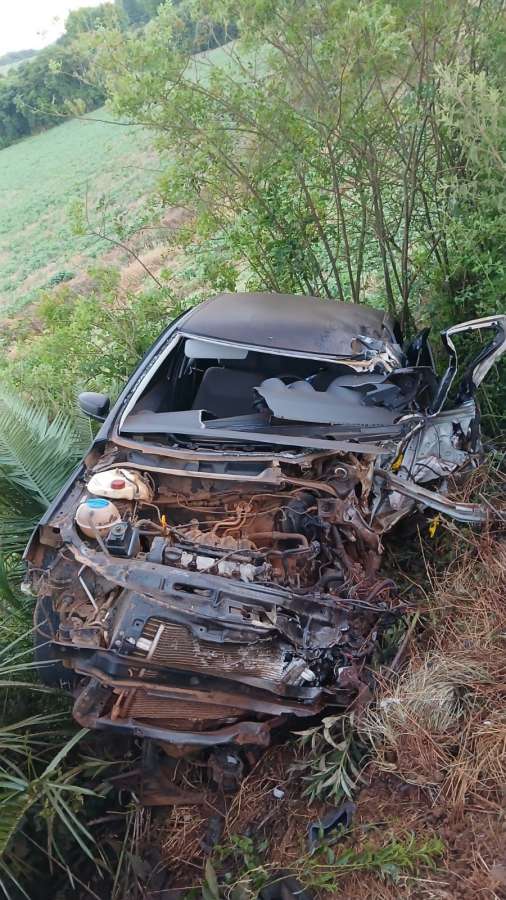 Com o impacto, o carro saiu da pista e parou em uma área de vegetação às margens da estrada.