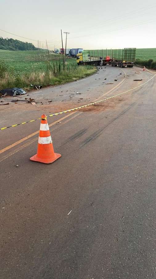 A colisão envolveu um automóvel e um caminhão que trafegavam em sentidos opostos da rodovia.