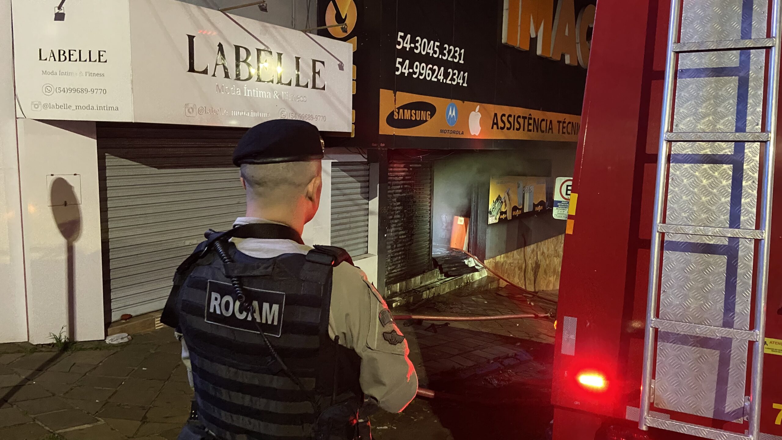 Um incêndio foi registrado na madrugada deste sábado (21), no Centro de Passo Fundo.