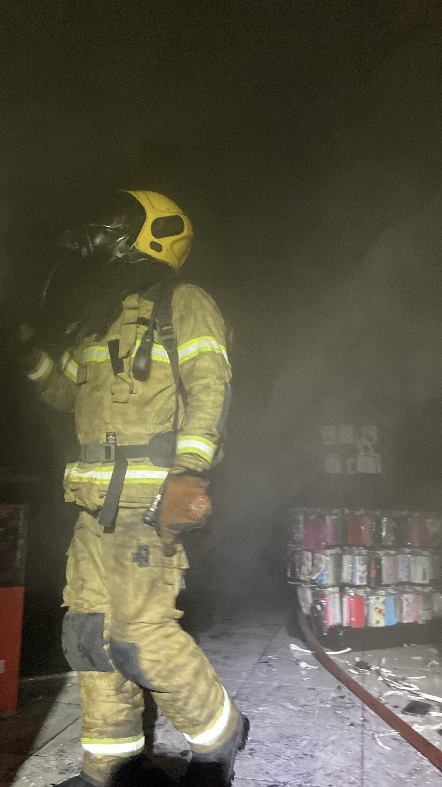 Devido à rápida ação da guarnição, o incêndio ficou restrito à parede onde estão os disjuntores, evitando que o fogo se alastrasse pela loja.