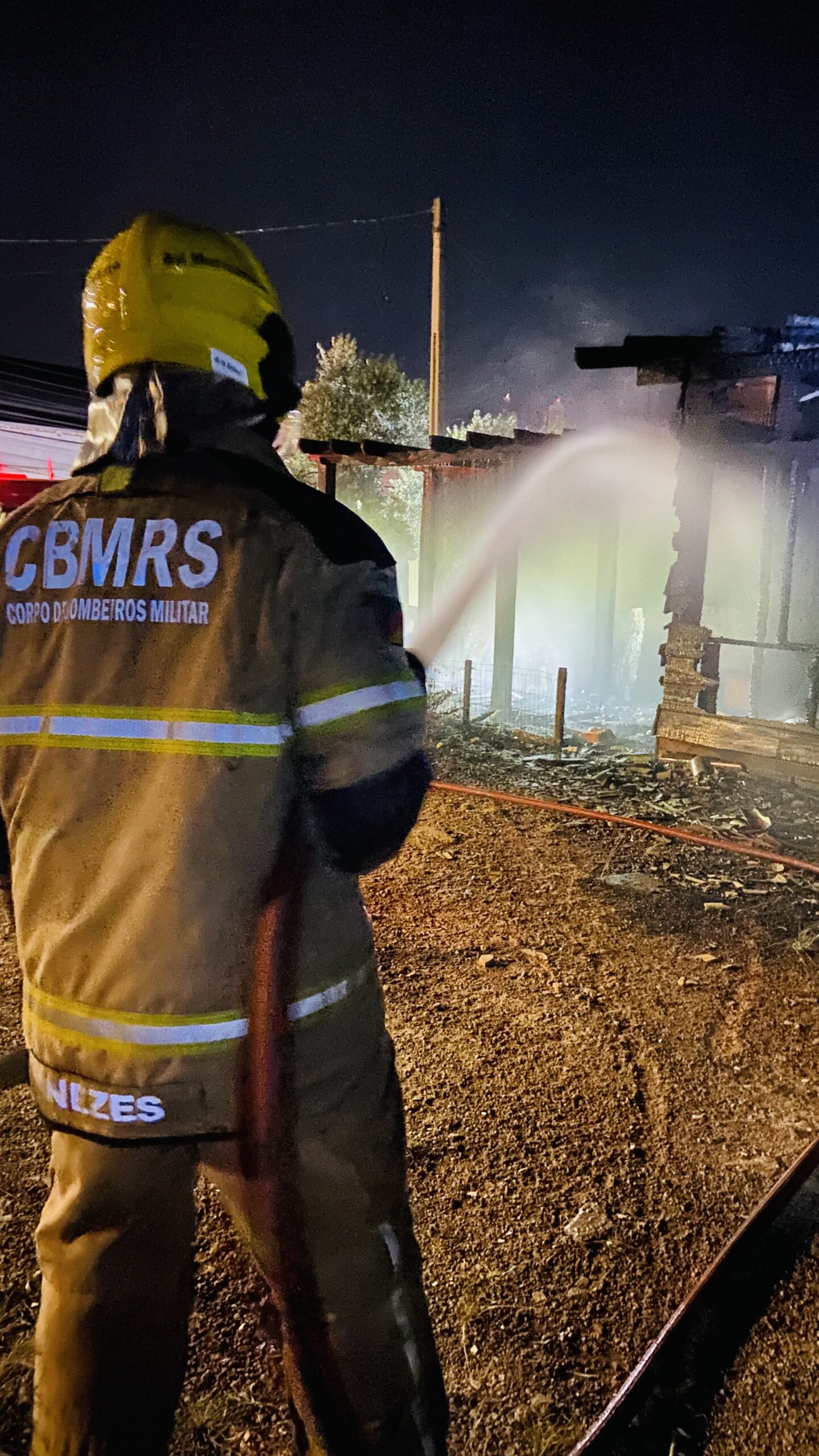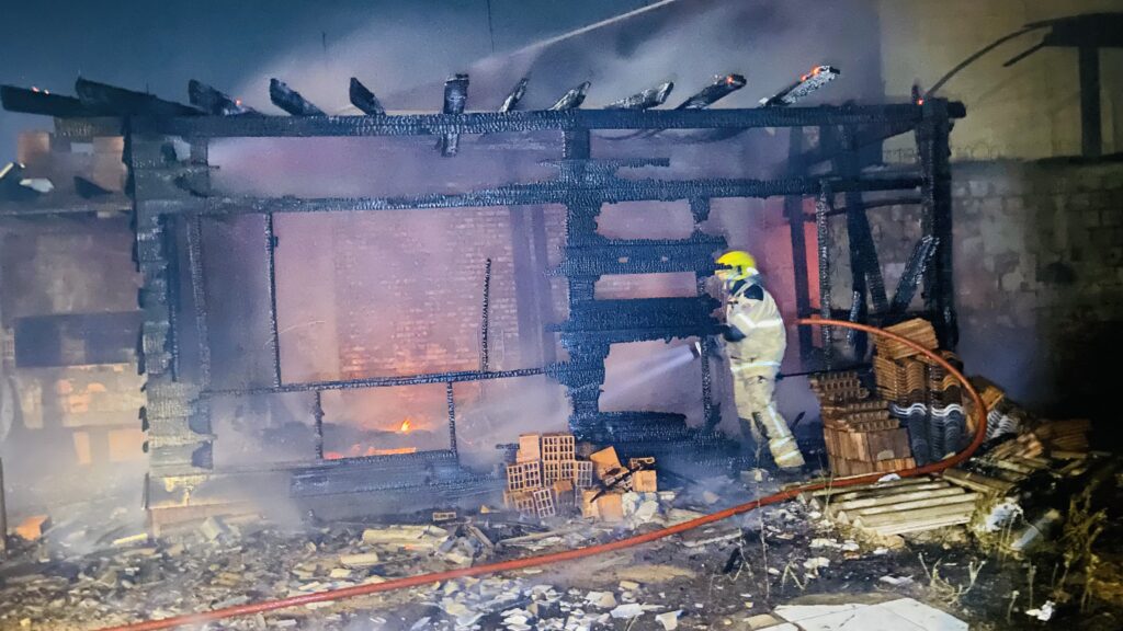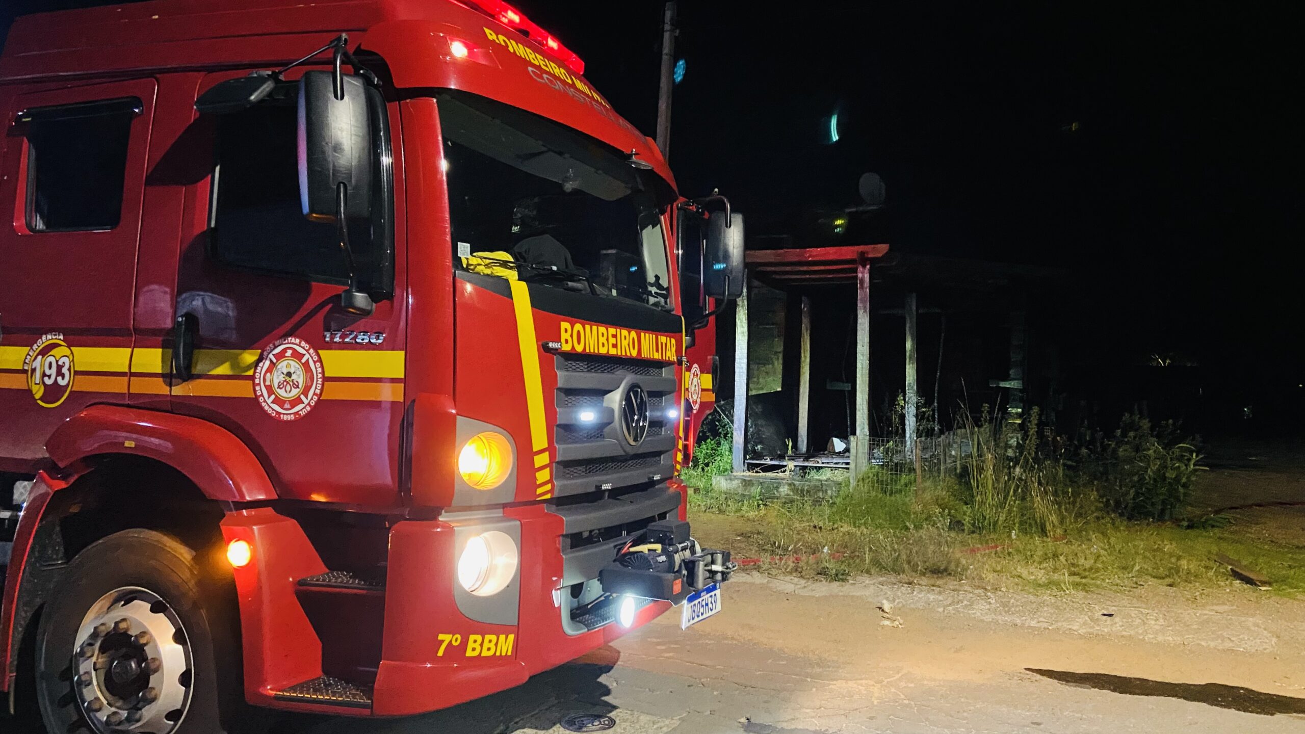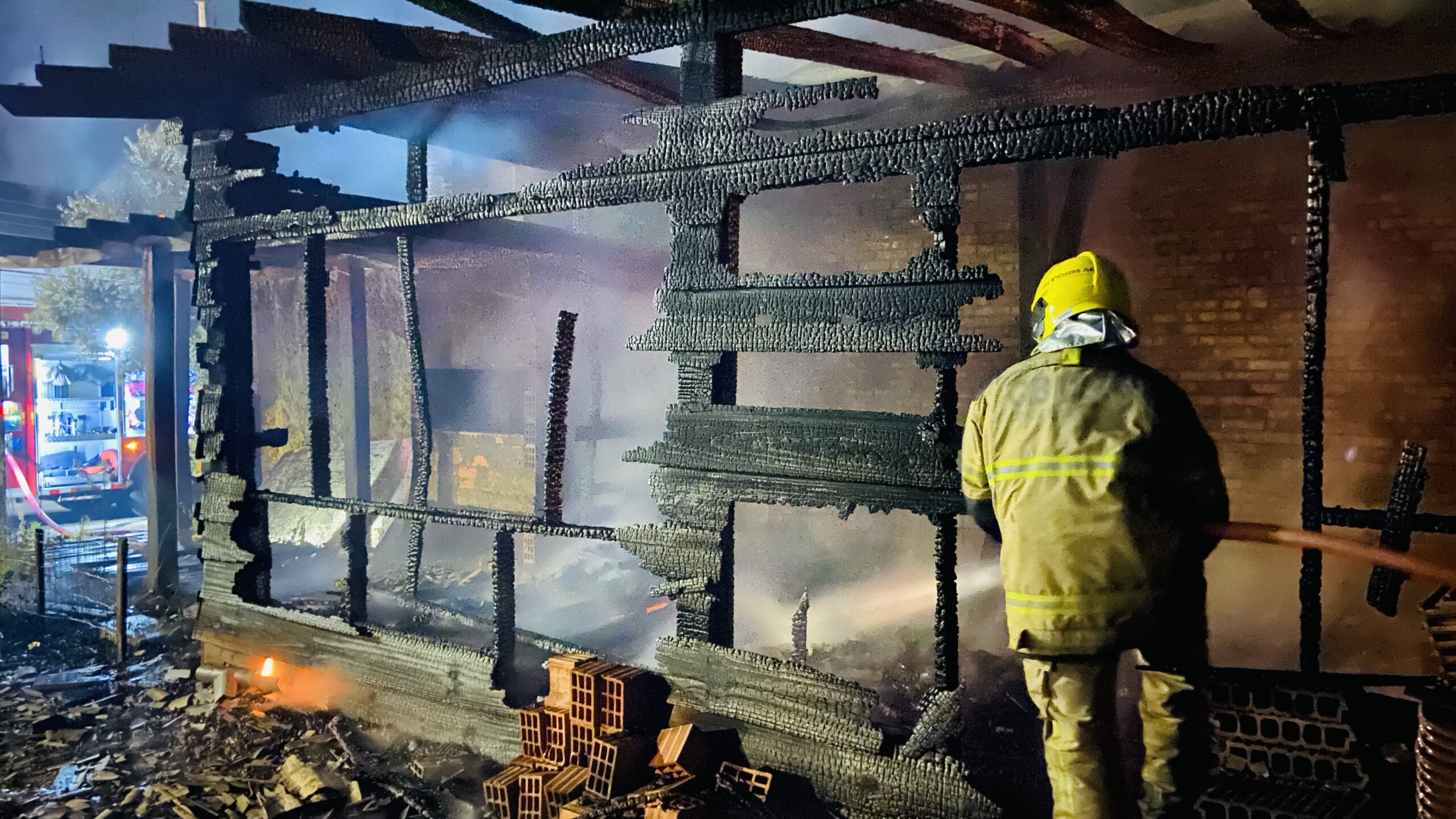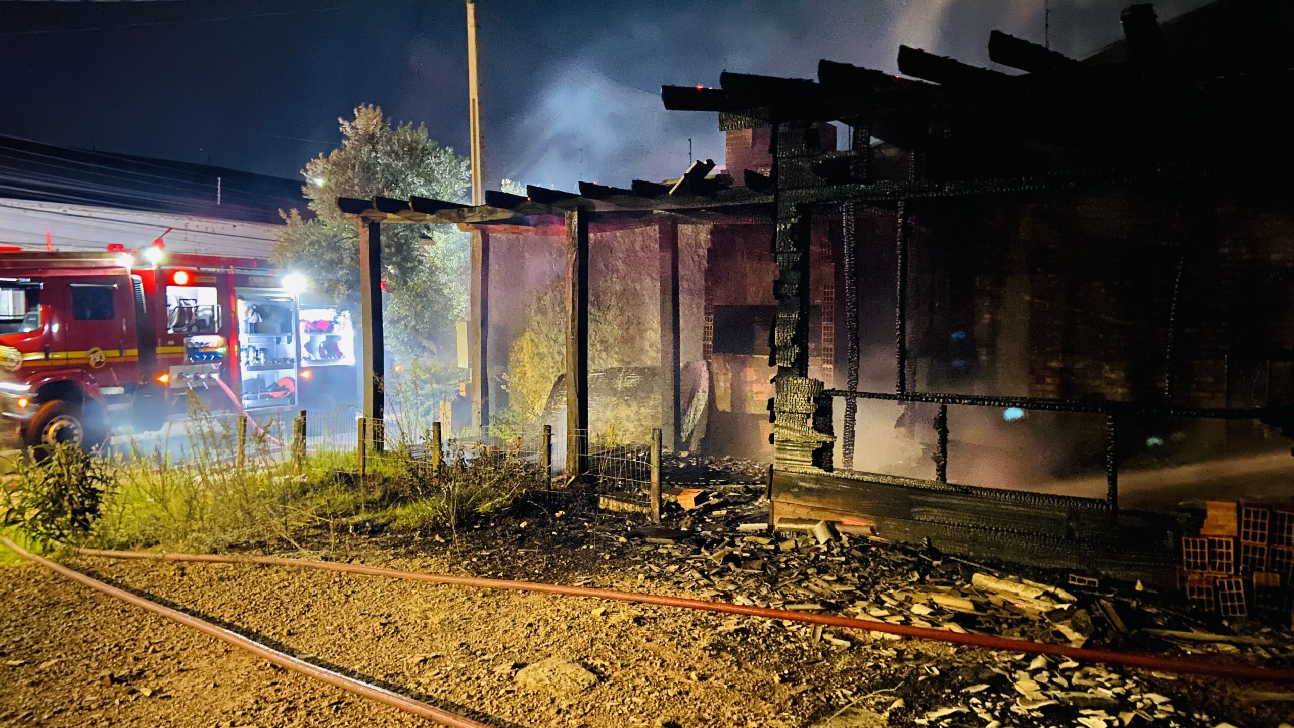 Ao chegarem no local, os bombeiros encontraram um galpão de madeira completamente tomado pelas chamas.