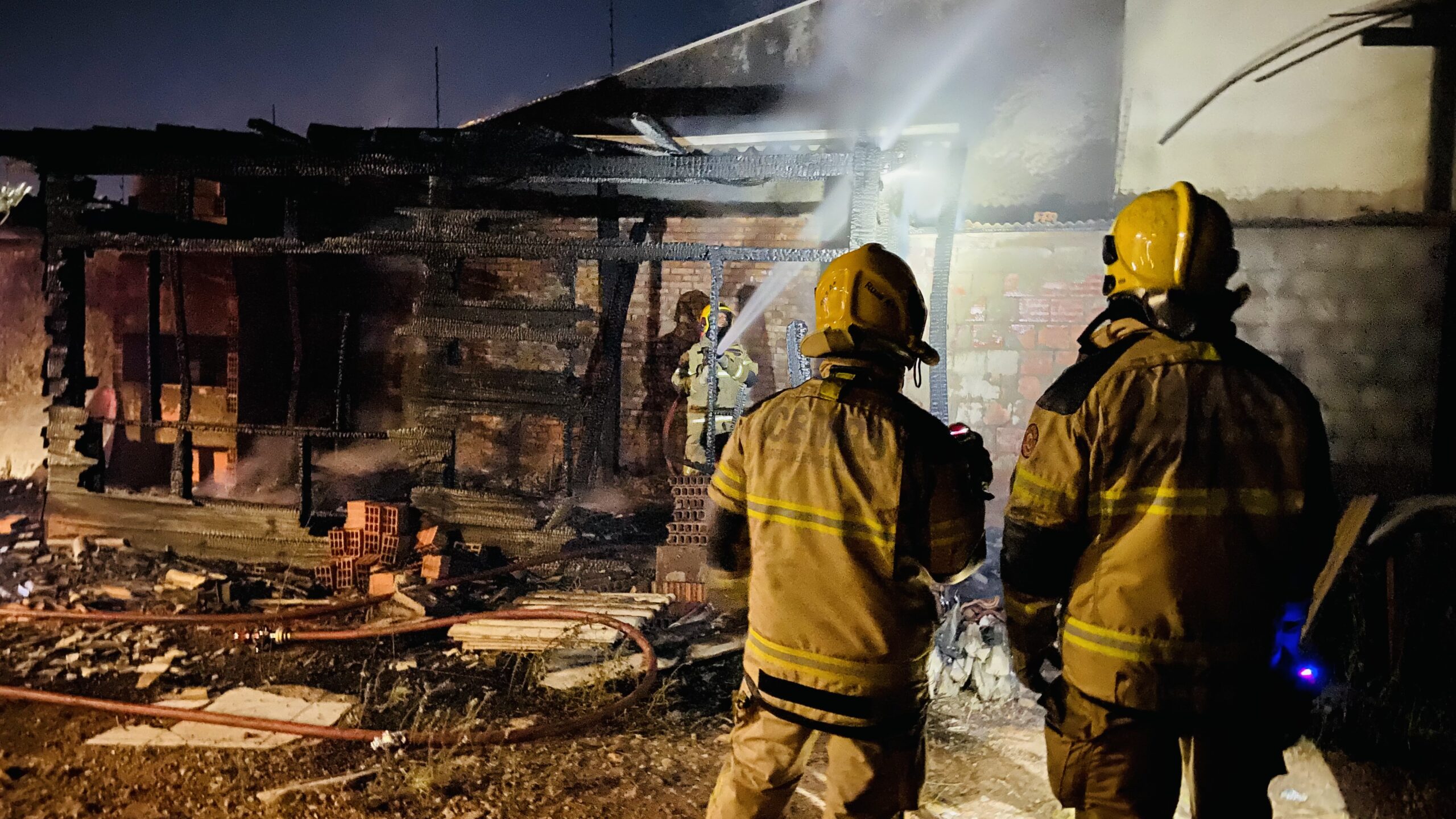 Mais de cinco mil litros de água foram utilizados para controlar o incêndio e realizar o resfriamento do imóvel ao lado.