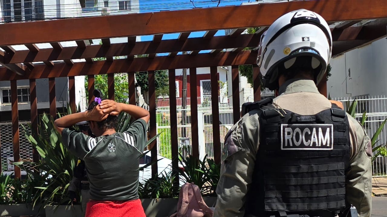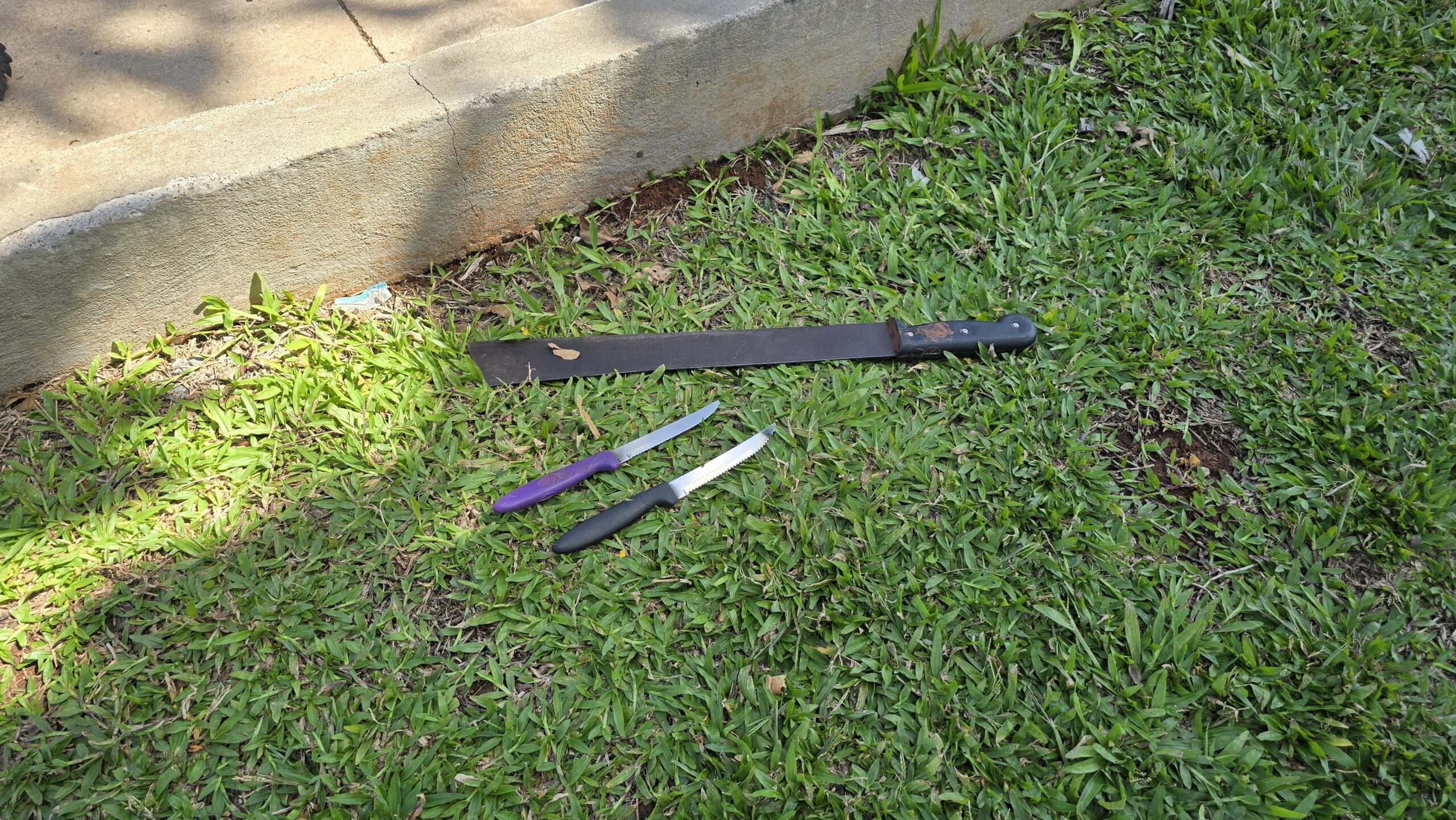 A ROCAM foi despachada para averiguação e localizou um facão e facas de cozinha utilizados para ameaçar pedestres.