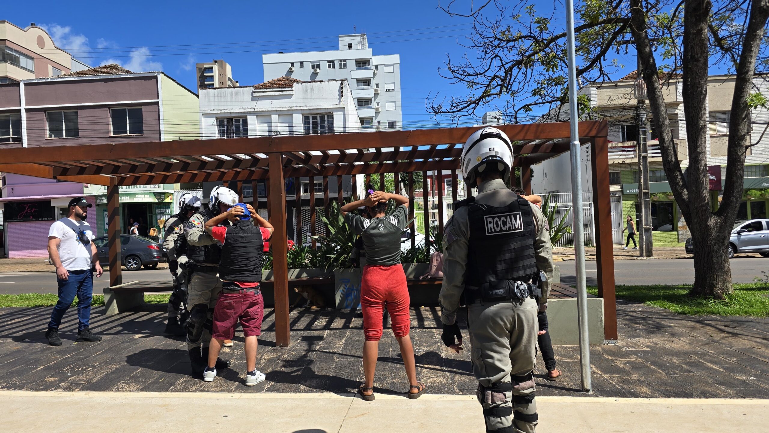 Na tarde desta segunda-feira (19), a Brigada Militar foi acionada após pessoas em situação de rua ameaçarem pedestres com armas brancas na Avenida Brasil.