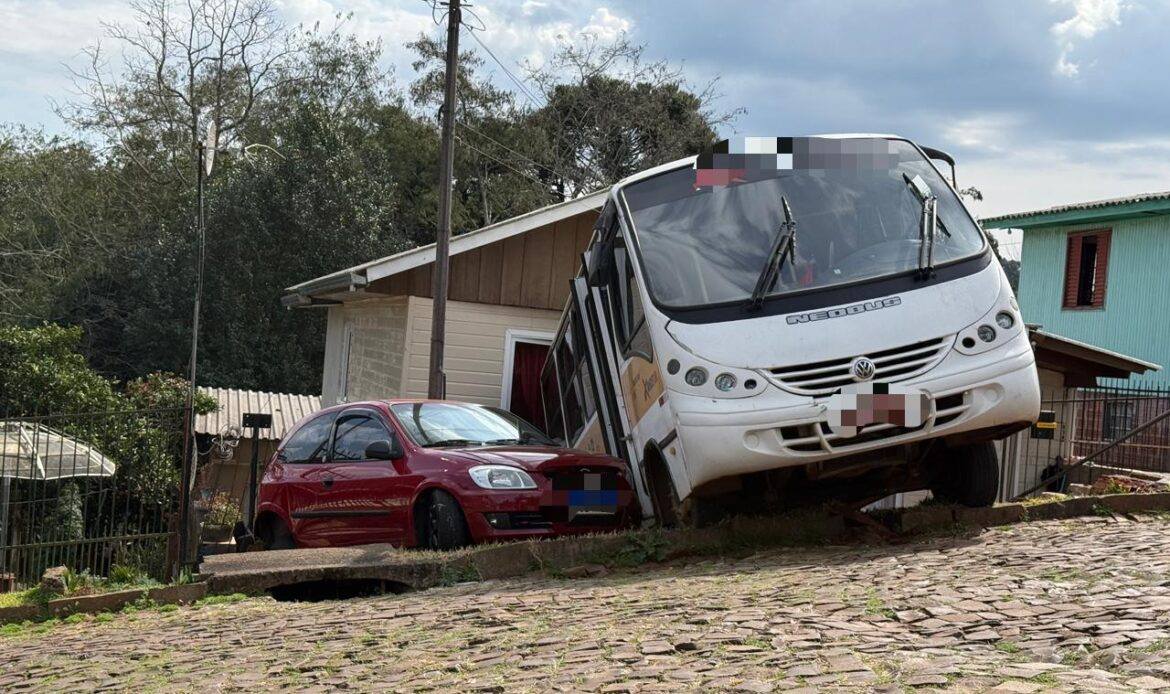 Micro-ônibus desgovernado invade residência em Getúlio Vargas