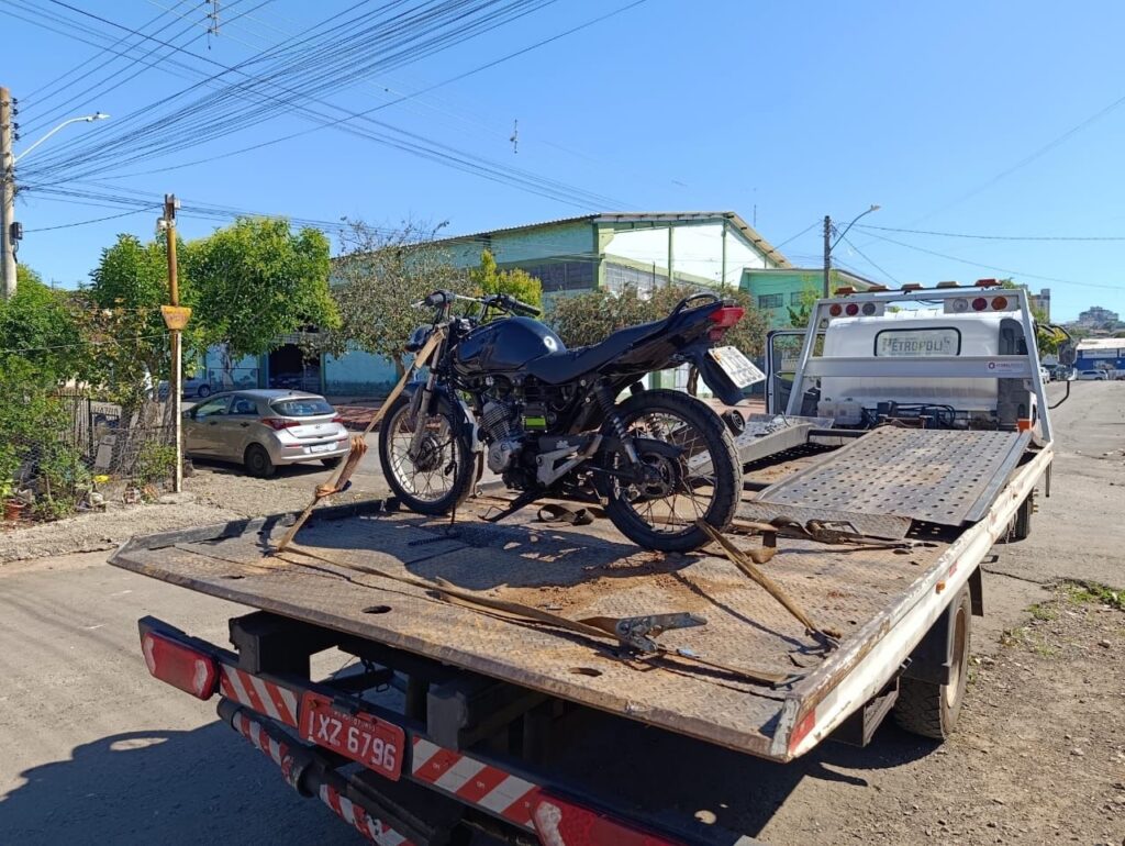Após a verificação da placa, foi confirmada a restrição de furto/roubo, e o veículo foi removido pelo guincho e encaminhado à delegacia para os procedimentos legais.