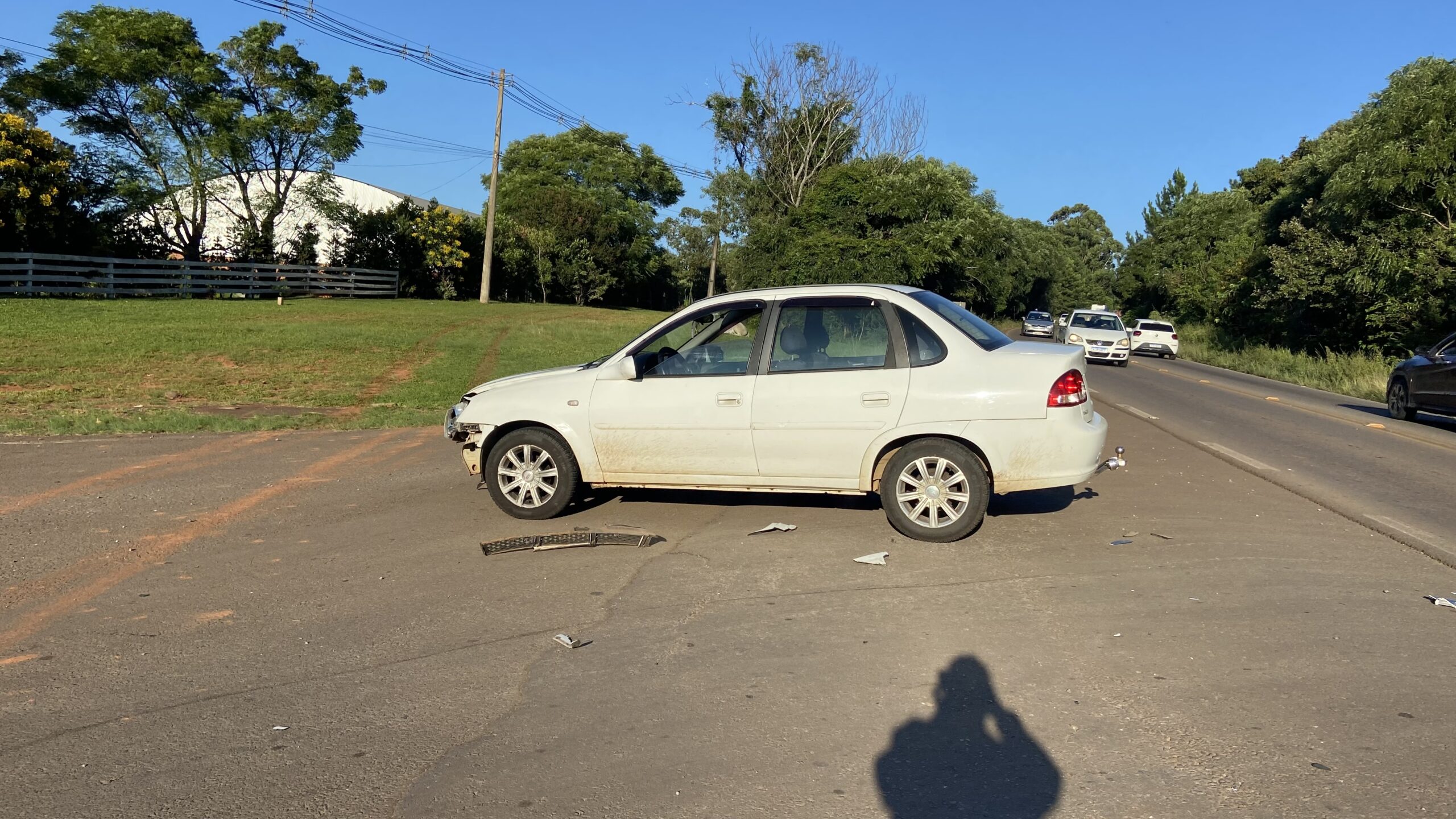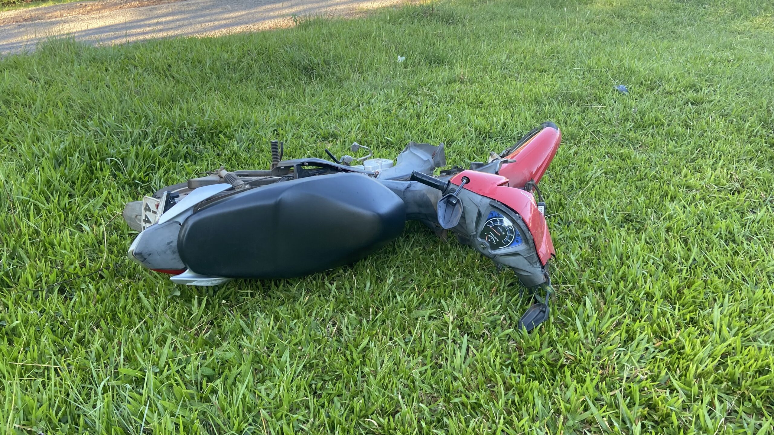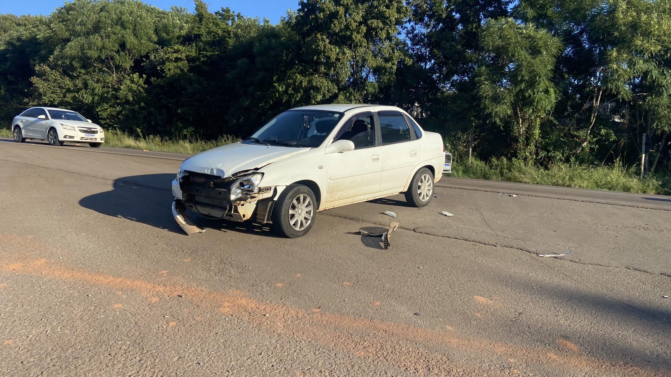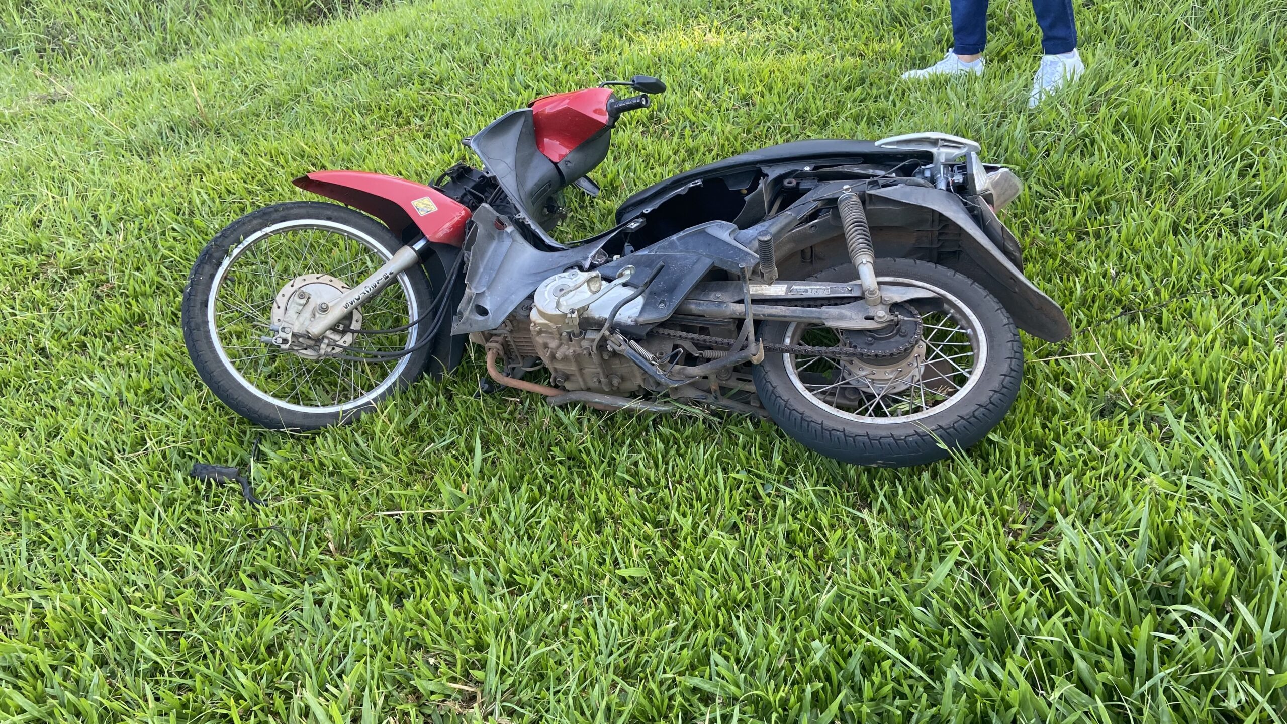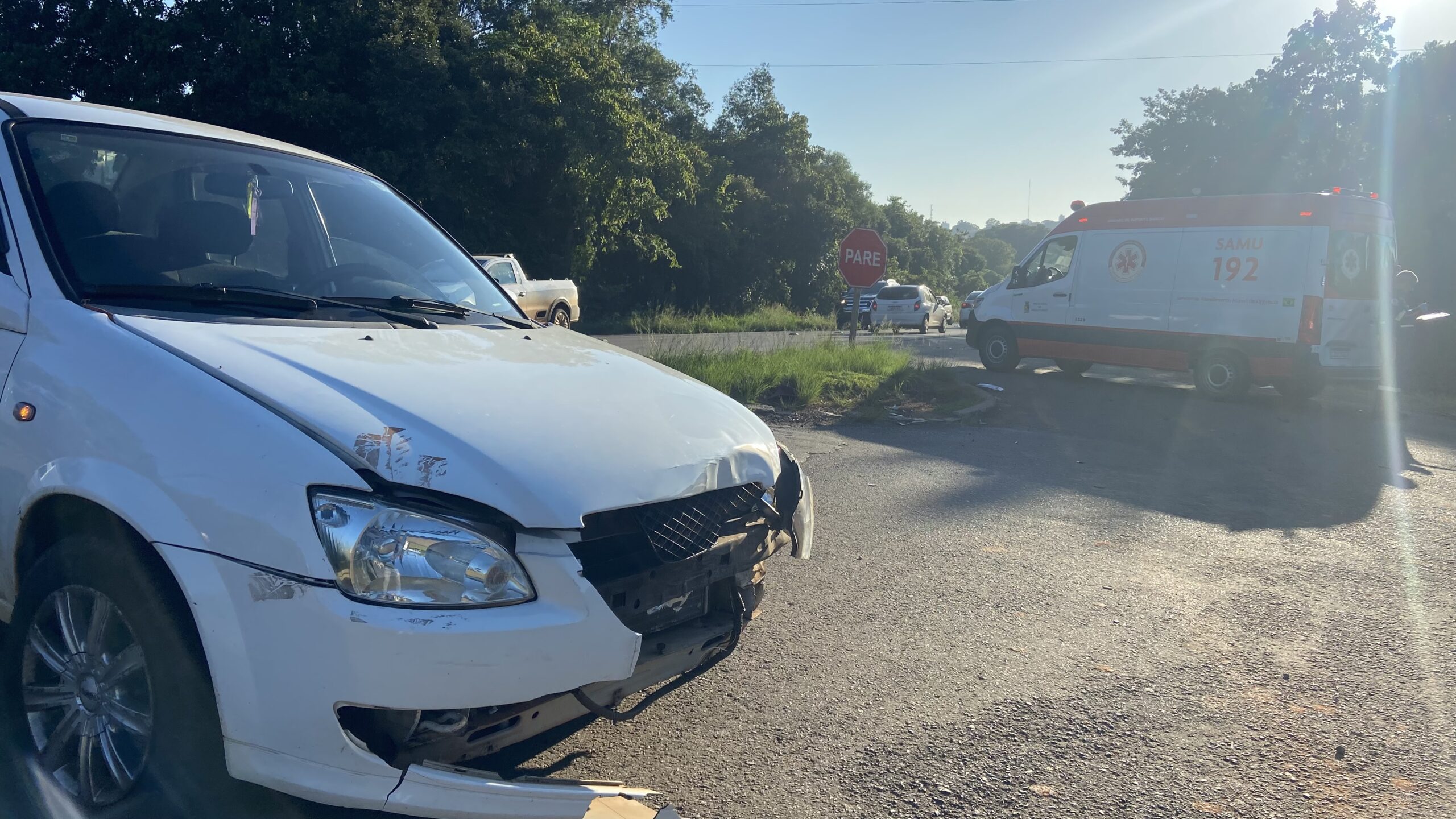 O acidente envolveu um GM Classic branco e uma Honda Biz vermelha.