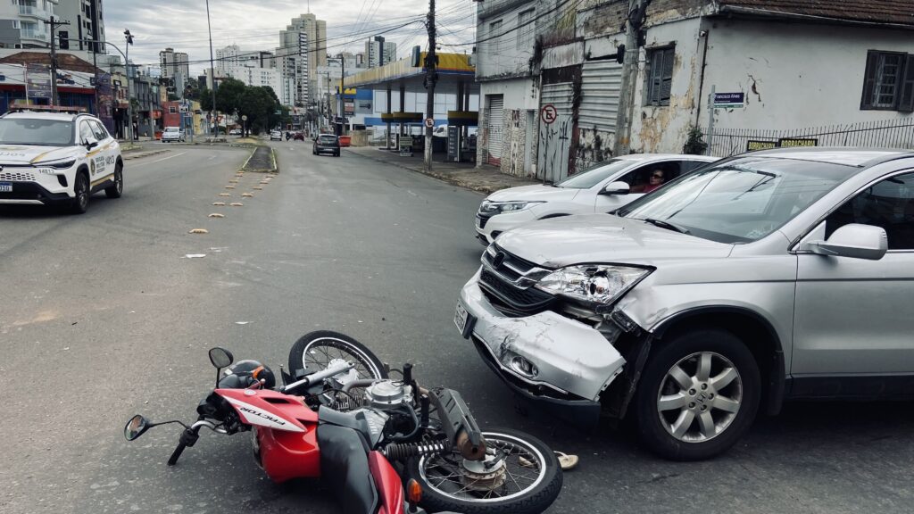 Na tarde deste domingo (15), um acidente de trânsito deixou um motociclista ferido na Avenida Presidente Vargas, em Passo Fundo.