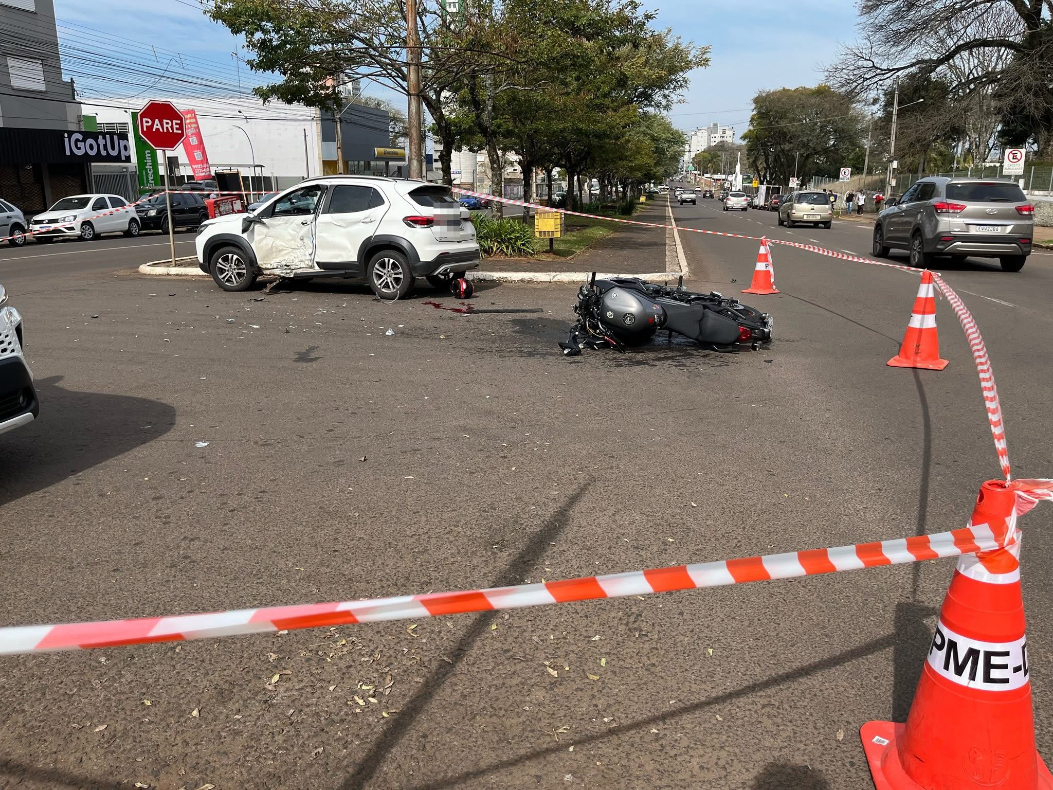 A colisão lateral envolveu uma motocicleta com placas de Erechim e um automóvel Fiat Pulse, também com placas do município.