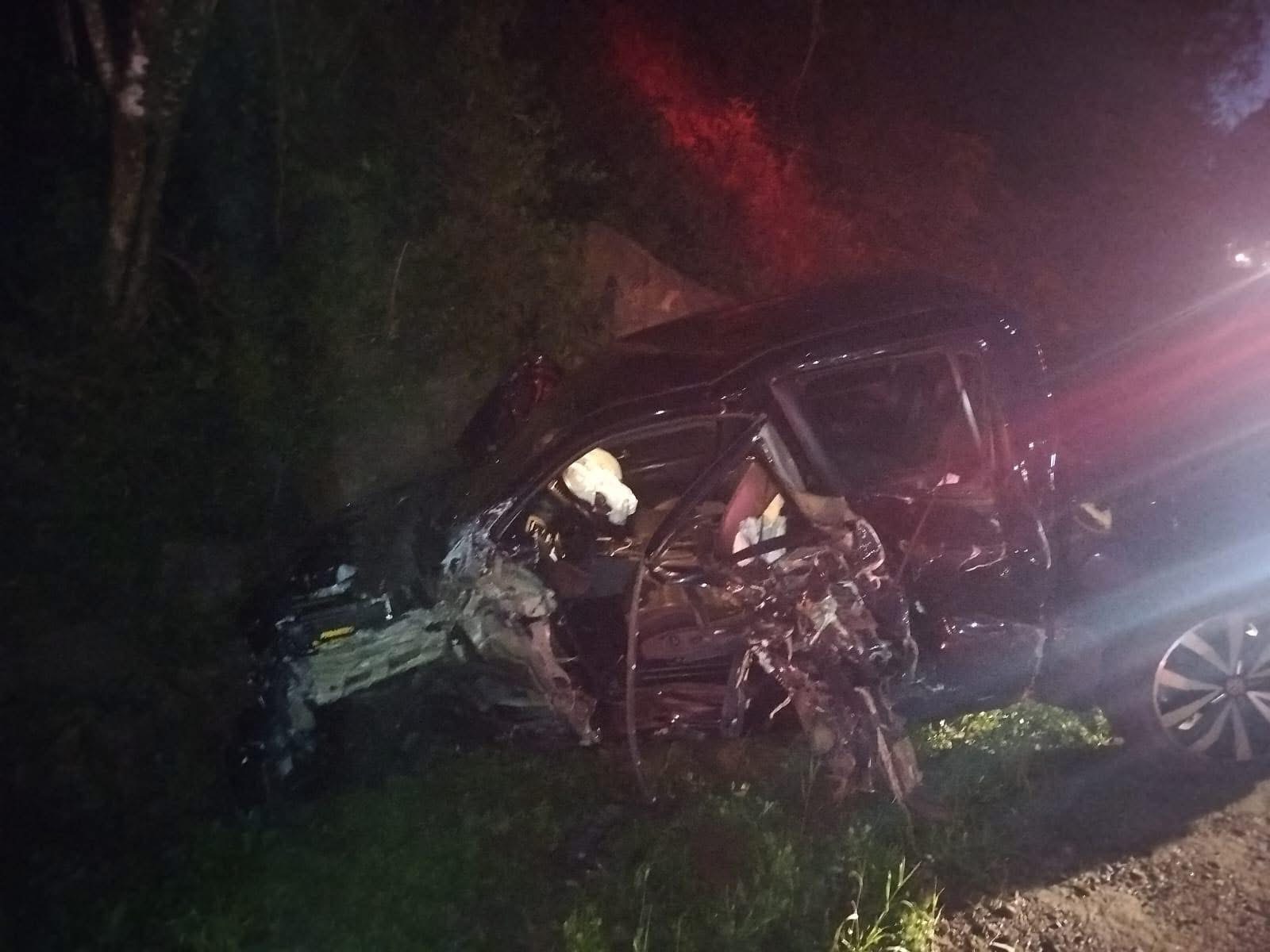 A colisão envolveu três veículos e deixou duas pessoas gravemente feridas.