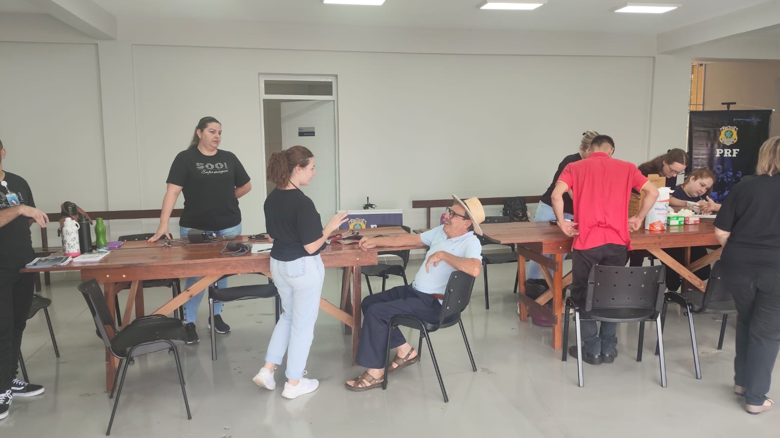 Durante a atividade, foram realizados testes de glicemia, aferição de pressão arterial e cálculo do Índice de Massa Corporal.