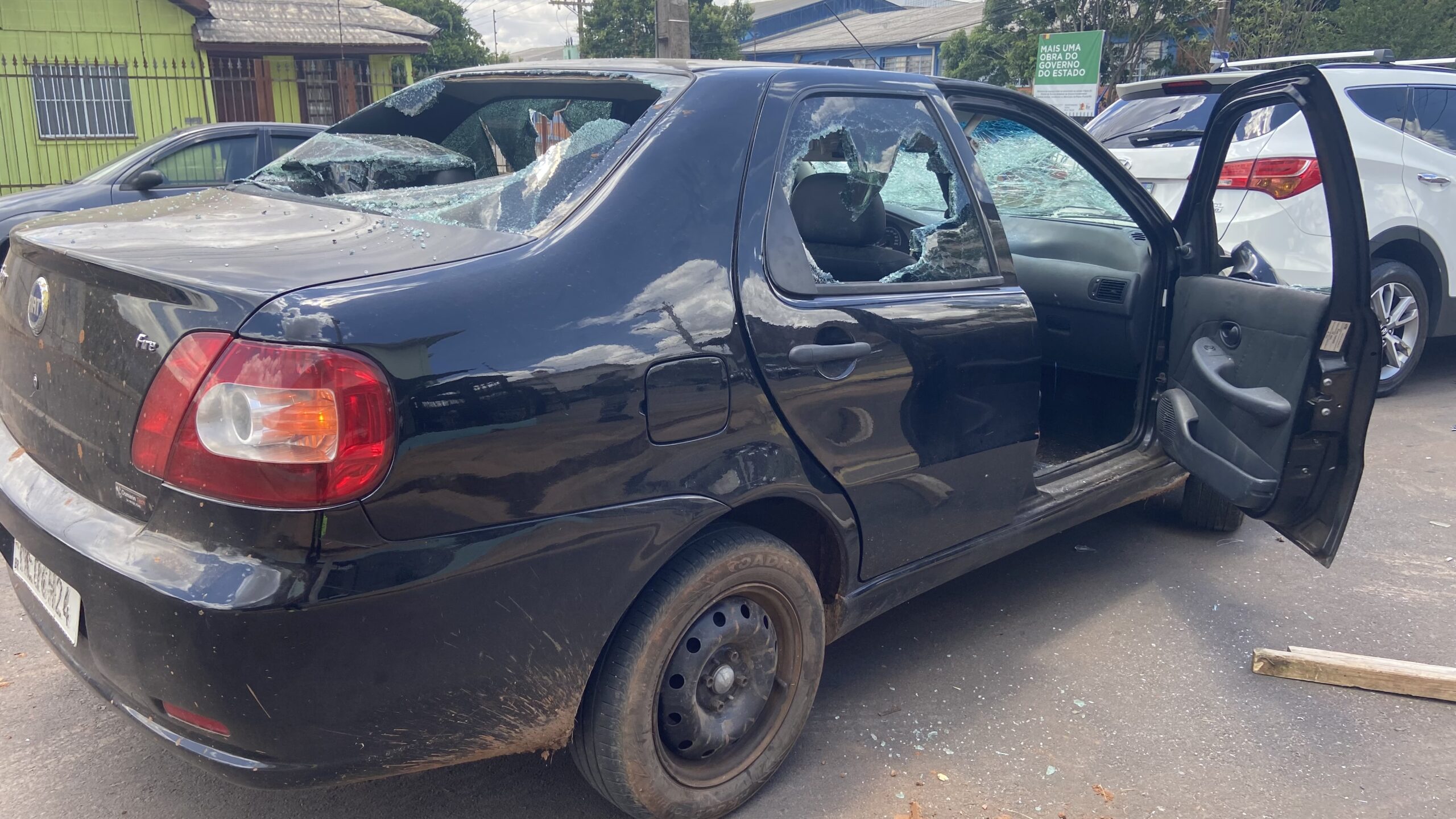 Segundo informações coletadas no local, um Fiat Siena foi atacado por um grupo de jovens, que teria se envolvido em uma briga na escola na terça-feira (25).