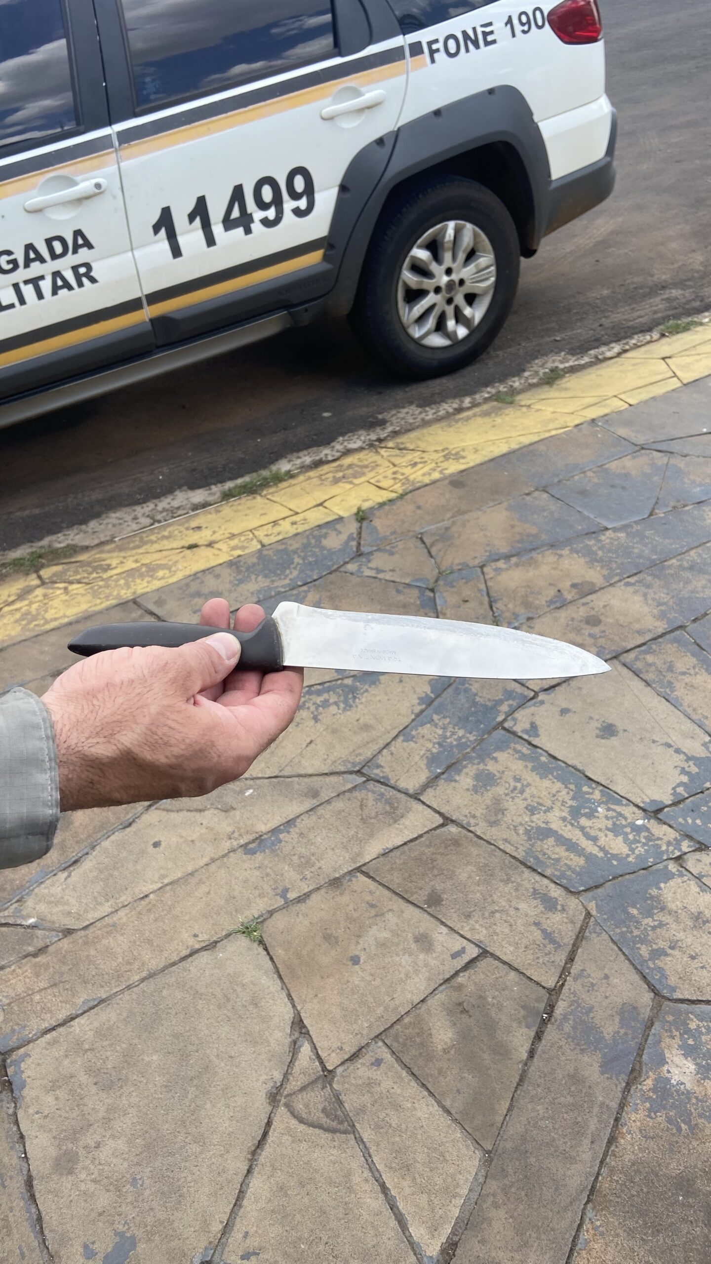 Durante o atendimento, uma faca foi localizada pelos policiais.