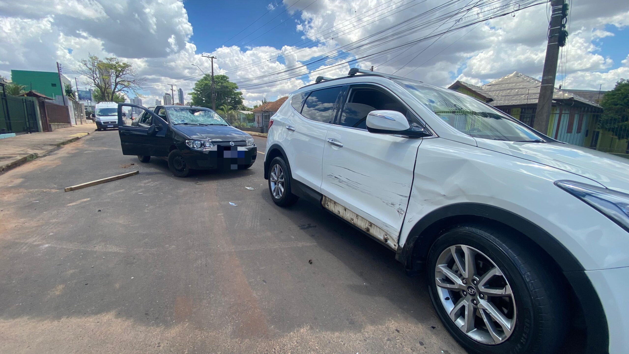 Ao tentar fugir do grupo, o condutor acelerou e acabou colidindo na lateral de uma Hyundai Tucson que trafegava pela via.