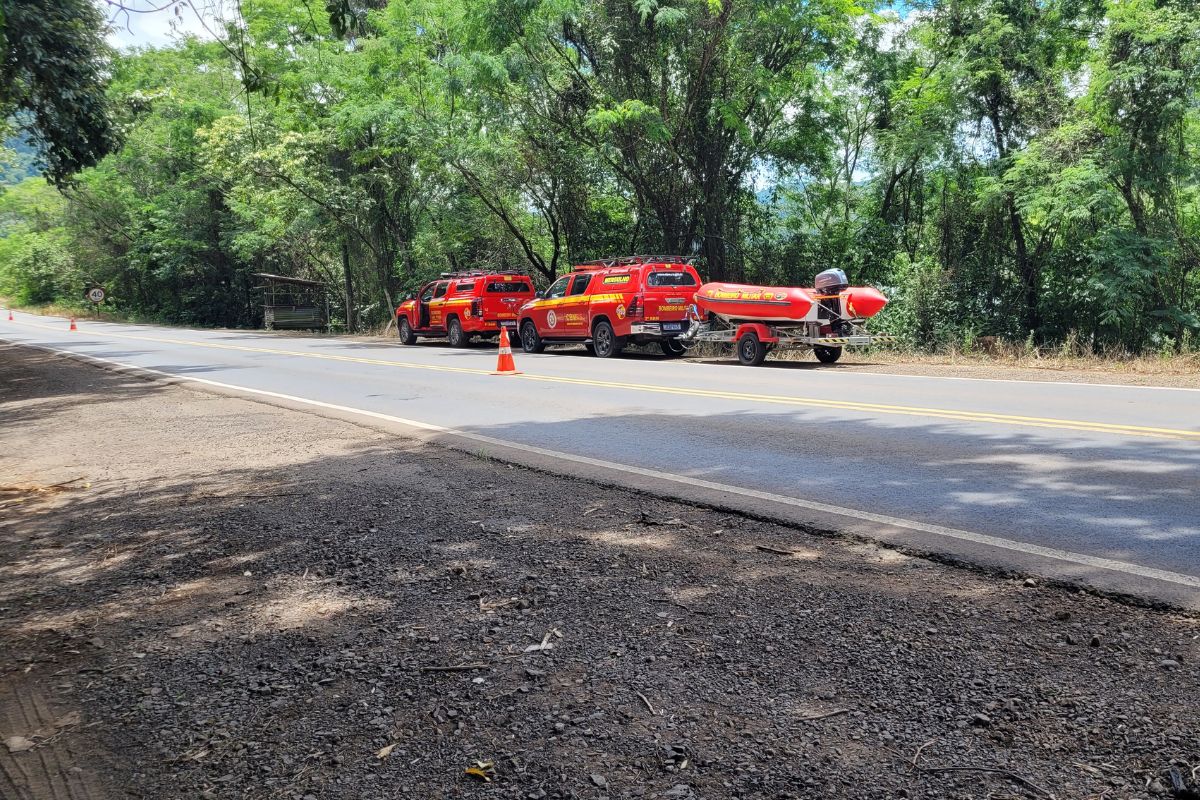 O Corpo de Bombeiros Militar realizou buscas ao longo do dia, enfrentando visibilidade nula e instabilidade do veículo em um barranco.